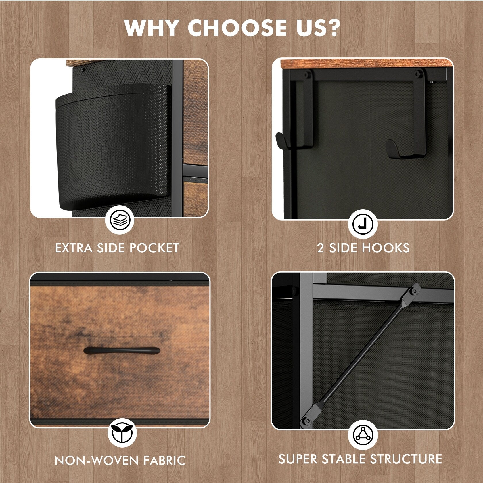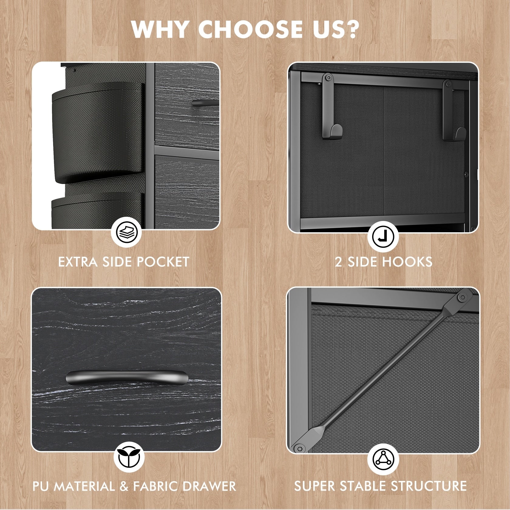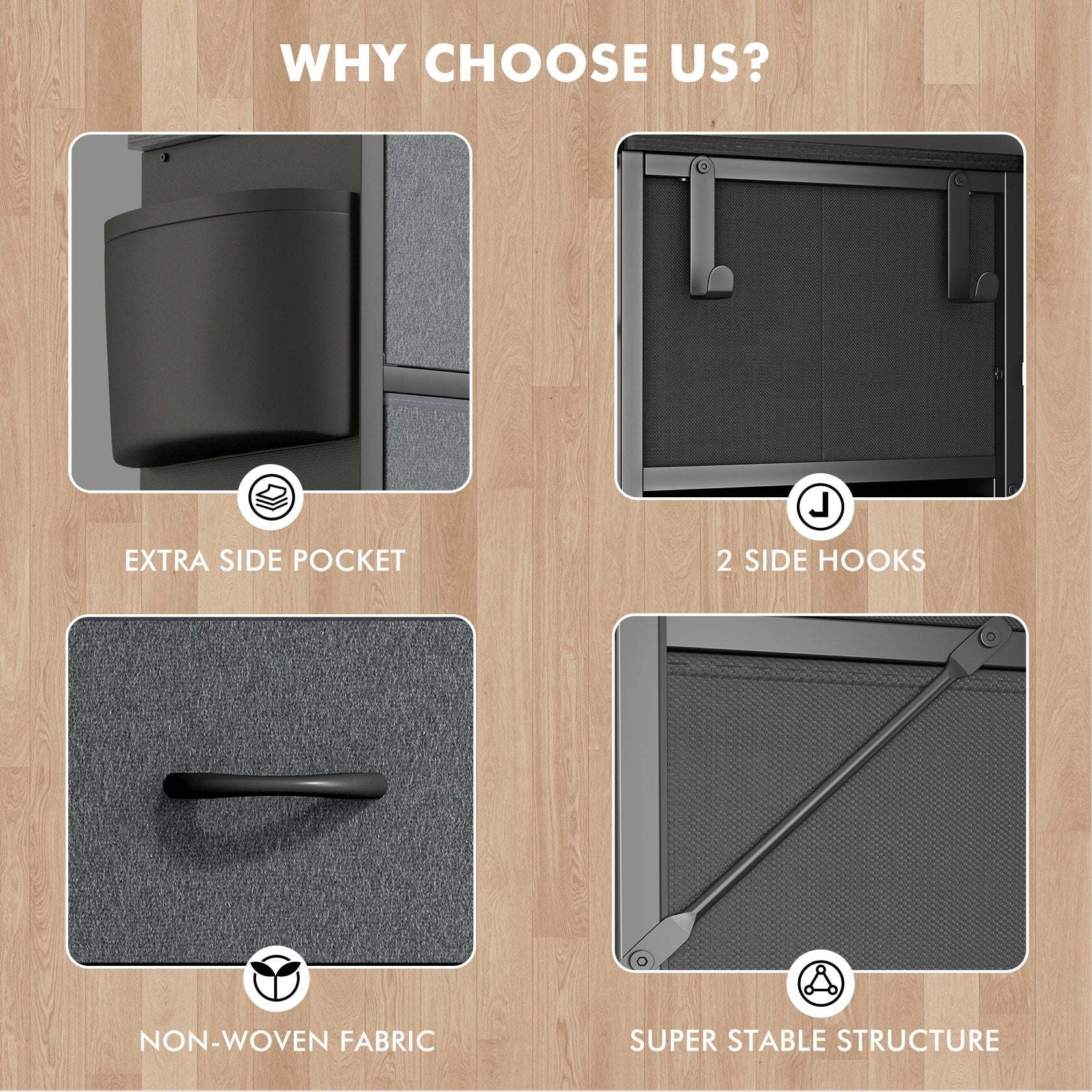 • Drawer Type: Fabric Drawers