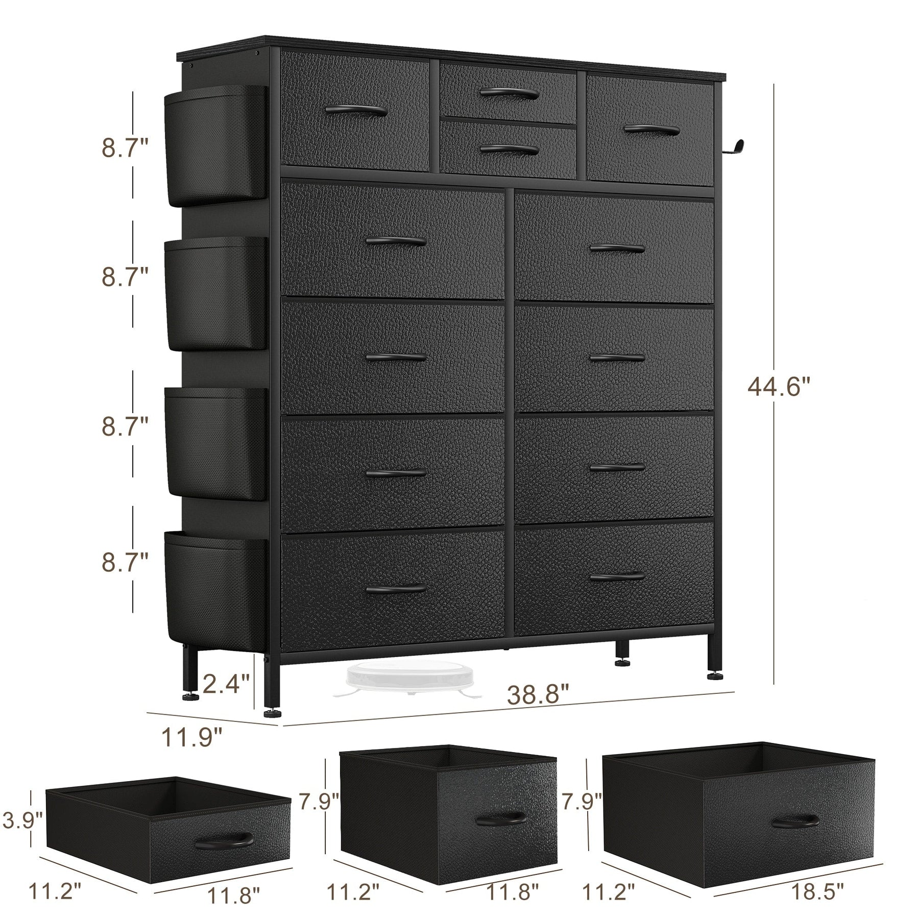 • 【Ample Storage Space】Roomy capacity with 12 deep fabric drawers. 3 different sizes of fabric drawer chests are great for organizing your clothes, blankets, scarves, socks, and others.