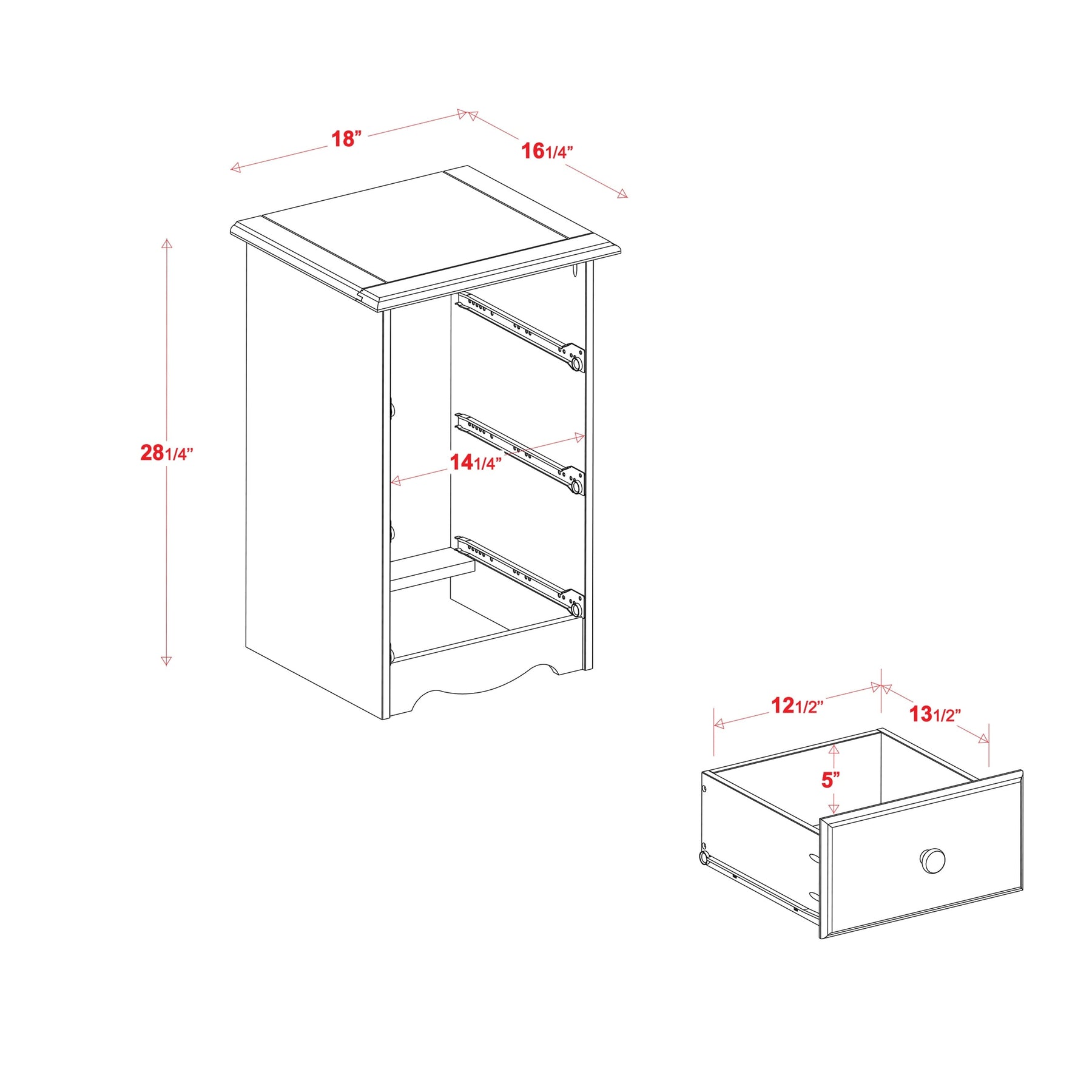 Drawer Details:                - Interior dimensions: 12.5'w x 13.5'd x 5.1'h