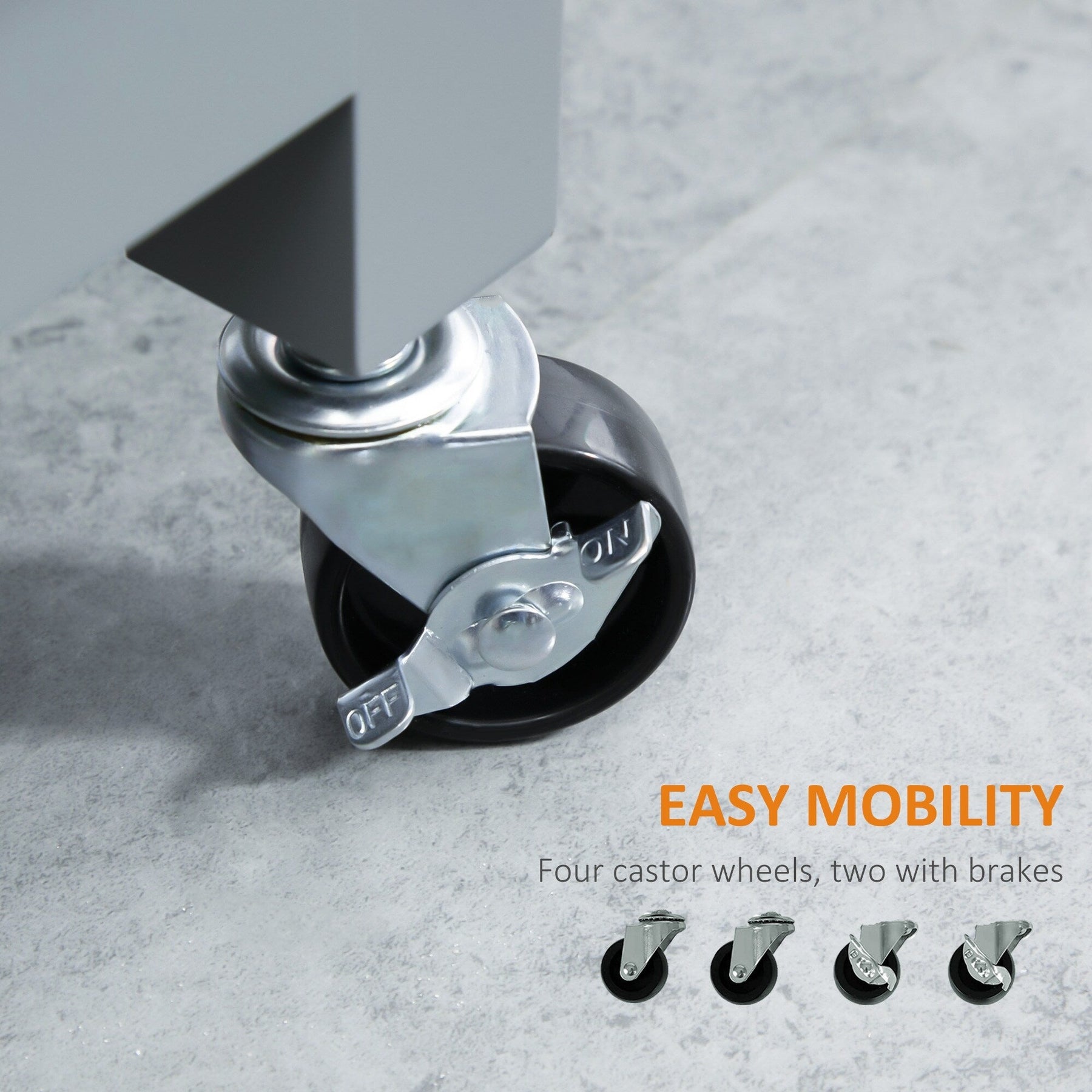 - Comes with four wheels for unrestricted movement. 2 wheels have brakes