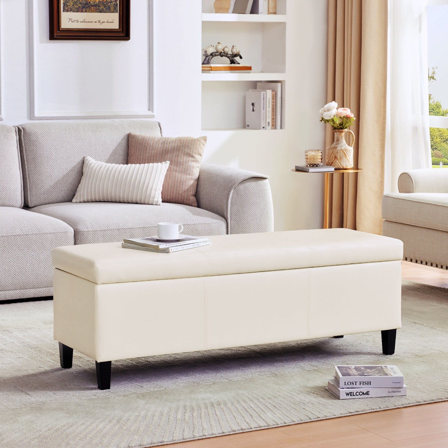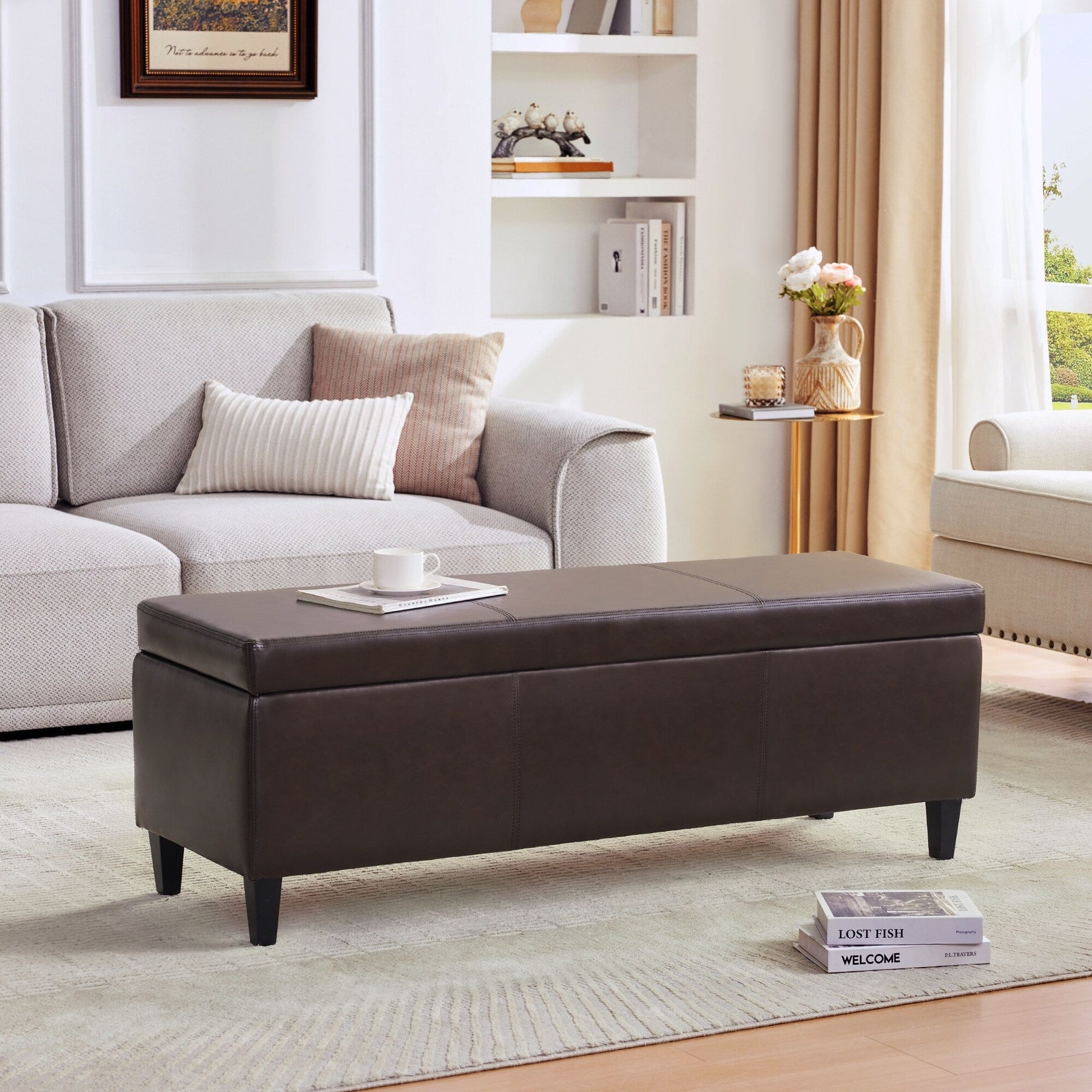 Introducing our versatile rectangular storage ottoman, a fusion of style and functionality. The convenience of pressure hinges grants you easy access to storage space, while the solid wood construction ensures long-lasting stability. The leather surface is not only invitingly luxurious but also incredibly easy to maintain, thanks to its waterproof feature. Its sleek lines and exquisite design effortlessly enhance the aesthetics of any room, making it a beautiful addition to your living space.This storage ottoman seamlessly transforms into extra seating whenever needed, making it a multi-functional addition to your space. Available in a range of colors, it adapts to various occasions, allowing you to match your decor effortlessly. Elevate your home with our Rectangular Storage Ottoman, a fusion of beauty and utility.