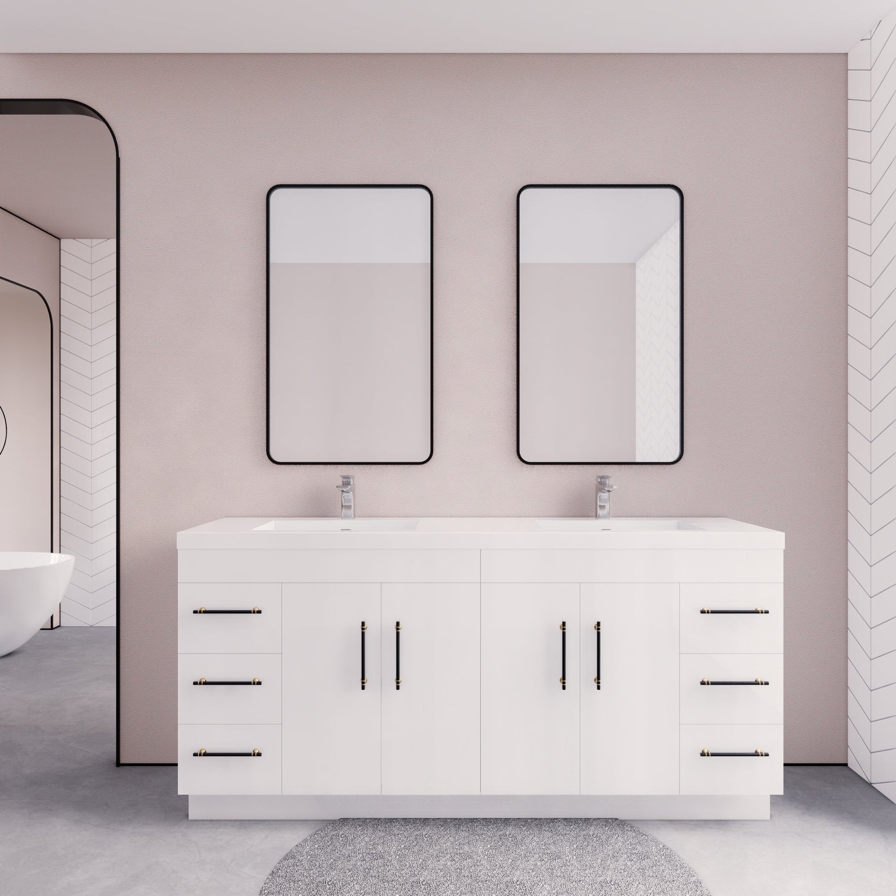 Introducing the Eliza 72'' Freestanding Vanity with Double Sink - a striking combination of modern design and top-quality materials. The sleek handle detail and high gloss veneer lend an air of sophistication to any bathroom, while the robust acrylic countertop promises easy maintenance and long-lasting durability. The Eliza features premium European soft-closing hardware that ensures a luxurious experience every time.