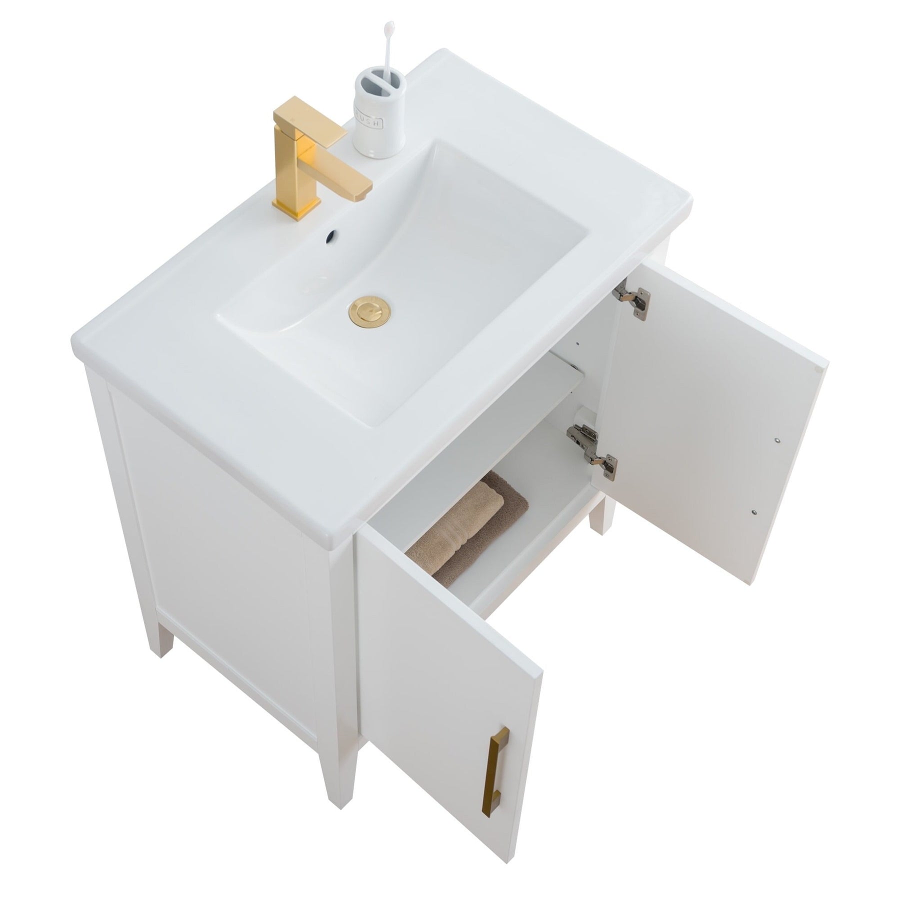 Vanity Art introducing the premium solid material bath vanity with sink. It is the perfect blend of functionality and style for your home. This essential piece offers generous storage space, featuring removable shelves to keep your belongings organized and easily accessible. Crafted with convenience in mind, our sink cabinet boasts a sleek ariston countertop that not only adds a touch of elegance but is also a breeze to clean. The regular-shaped sink complements the countertop, creating a seamless and eye-catching look for your bathroom. Built to last, our sink cabinet doors are equipped with premium-quality hinges, ensuring smooth and reliable operation. Versatility is key - our vanity bathroom sink cabinets aren't limited to the bathroom. With its stylish design and functional features, it's the perfect fit for a kitchen cabinet with a sink.
