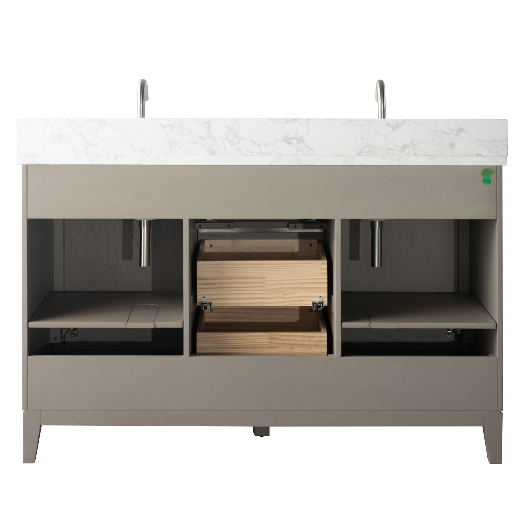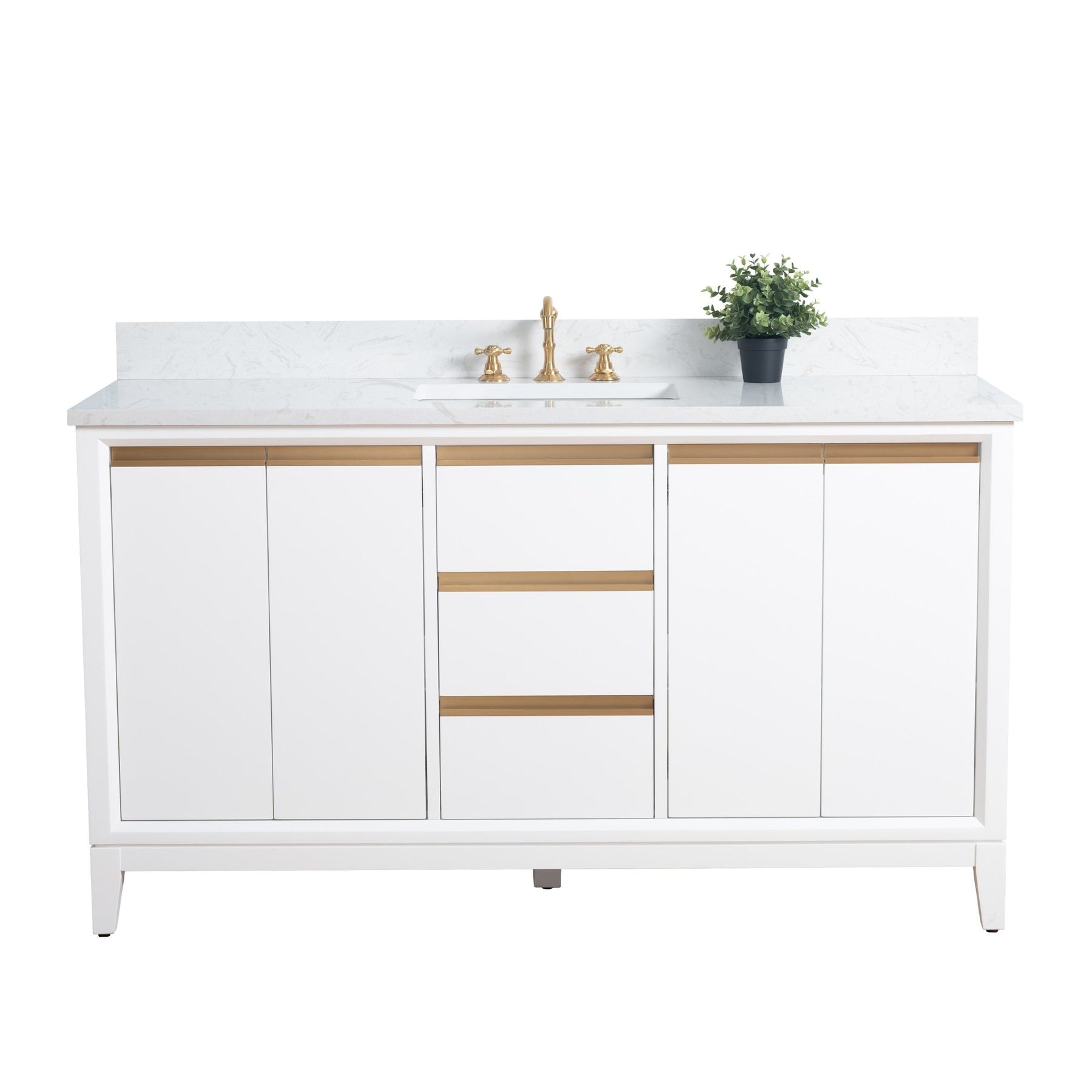 Vanity Art introducing the premium poplar wood bath vanity with sink. It is the perfect blend of functionality and style for your home. This essential piece offers generous storage space, featuring a Flip Down Tray, adjustable shelves, and drawers to keep your belongings organized and easily accessible. Crafted with convenience in mind, our sink cabinet boasts a sleek ariston engineered marble countertop that not only adds a touch of elegance but is also a breeze to clean. The rectangular undermount sink complements the countertop, creating a seamless and eye-catching look for your bathroom. Built to last, our under-sink cabinet soft-closing doors and drawers are equipped with premium-quality hinges, ensuring smooth and reliable operation. Versatility is key - our vanity bathroom sink cabinets aren't limited to the bathroom. With its stylish design and functional features, it's the perfect fit for a kitchen cabinet with a sink.