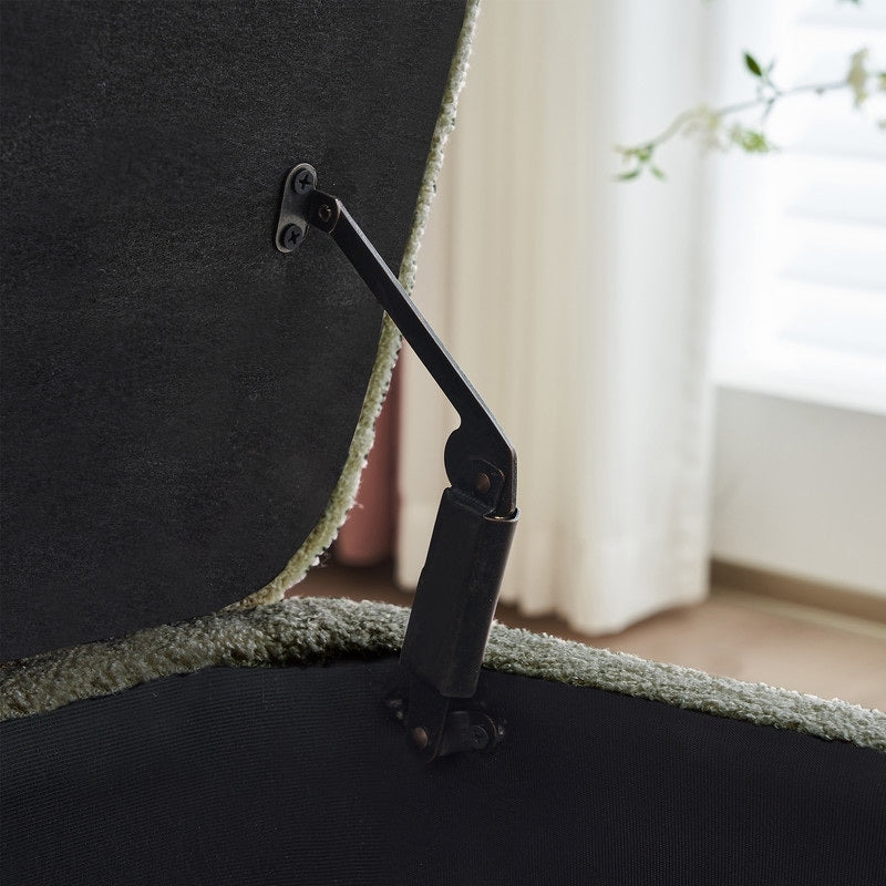【Sturdy Construction】Supported by durable synthetic wood legs, the ottoman bench boasts stability and durability. The secure hinged lid features solid plated metal hardware, ensuring reliable performance and long-lasting use.Equipped with a convenient boucle handle, accessing the storage compartment is effortless. Simply lift the lid to reveal ample space for storing belongings, making organization a breeze.