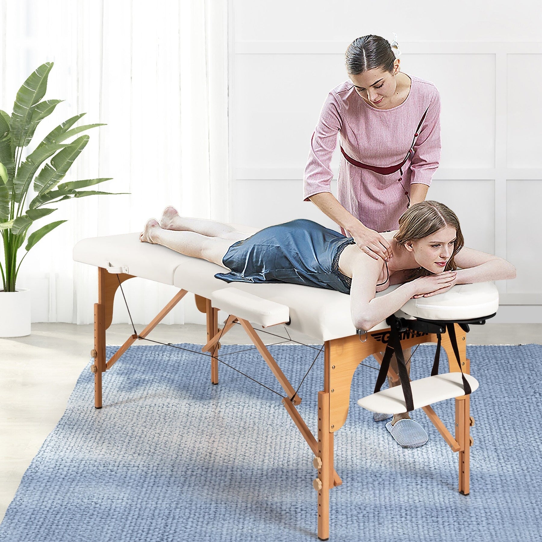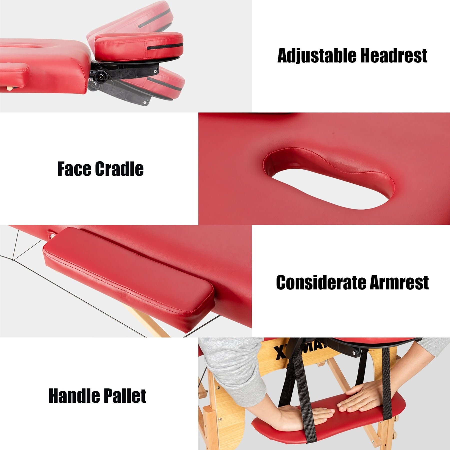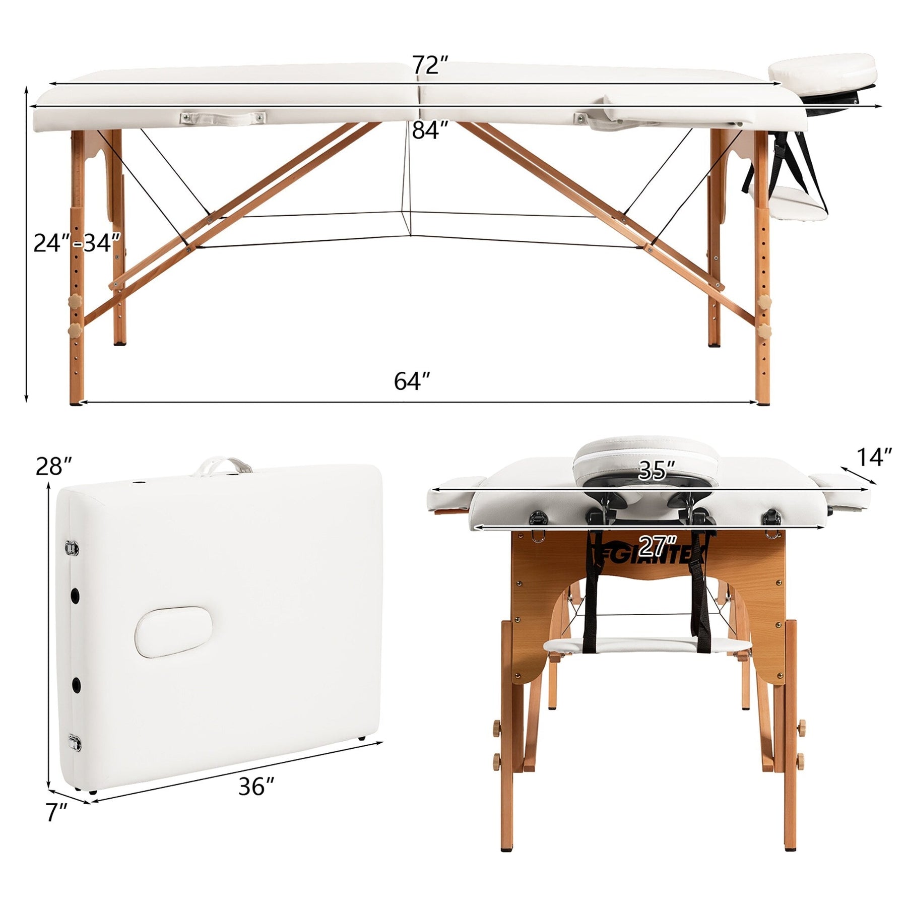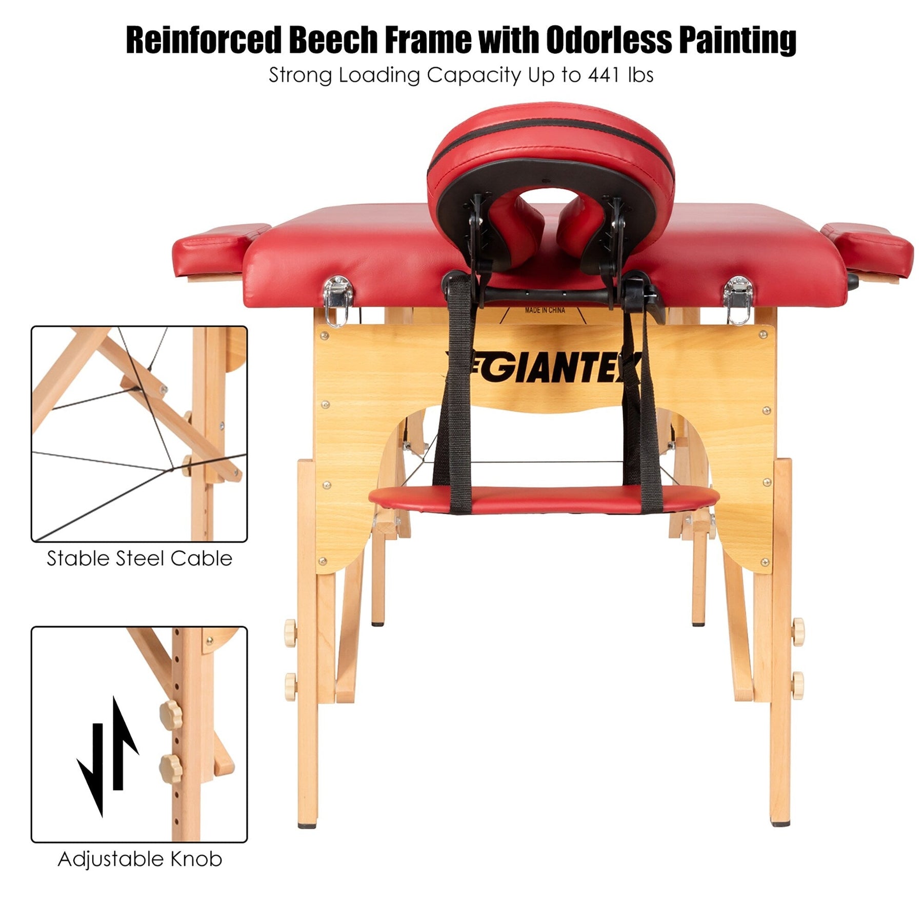 The height and headrest can be adjusted to fit therapists of different heights and meet various needs. Besides, the foldable and lightweight design allows you to carry this spa bed with ease and store it easily. The included carrying bag gives extra convenience. Constructed of solid beech frame with support steel cables, this high quality massage table is sturdy and stable to hold up to 441 lbs. And the high density sponge and breathable PVC leather offer maximum comfort and clean it easily.