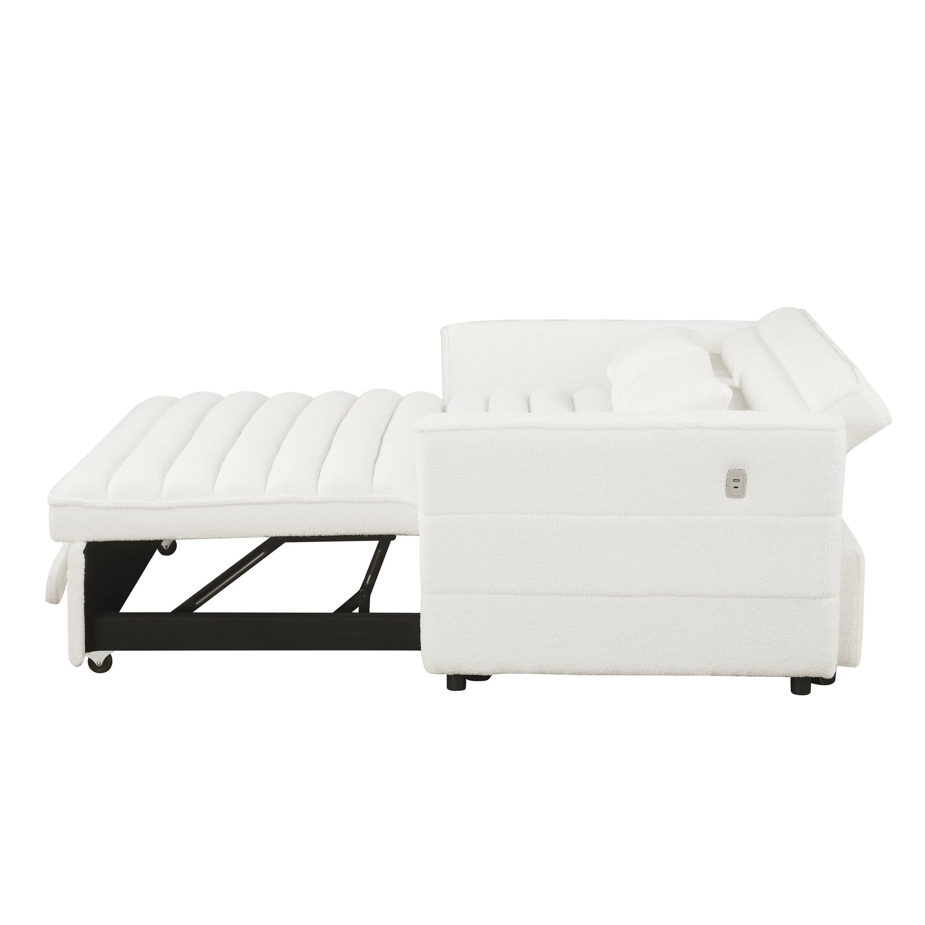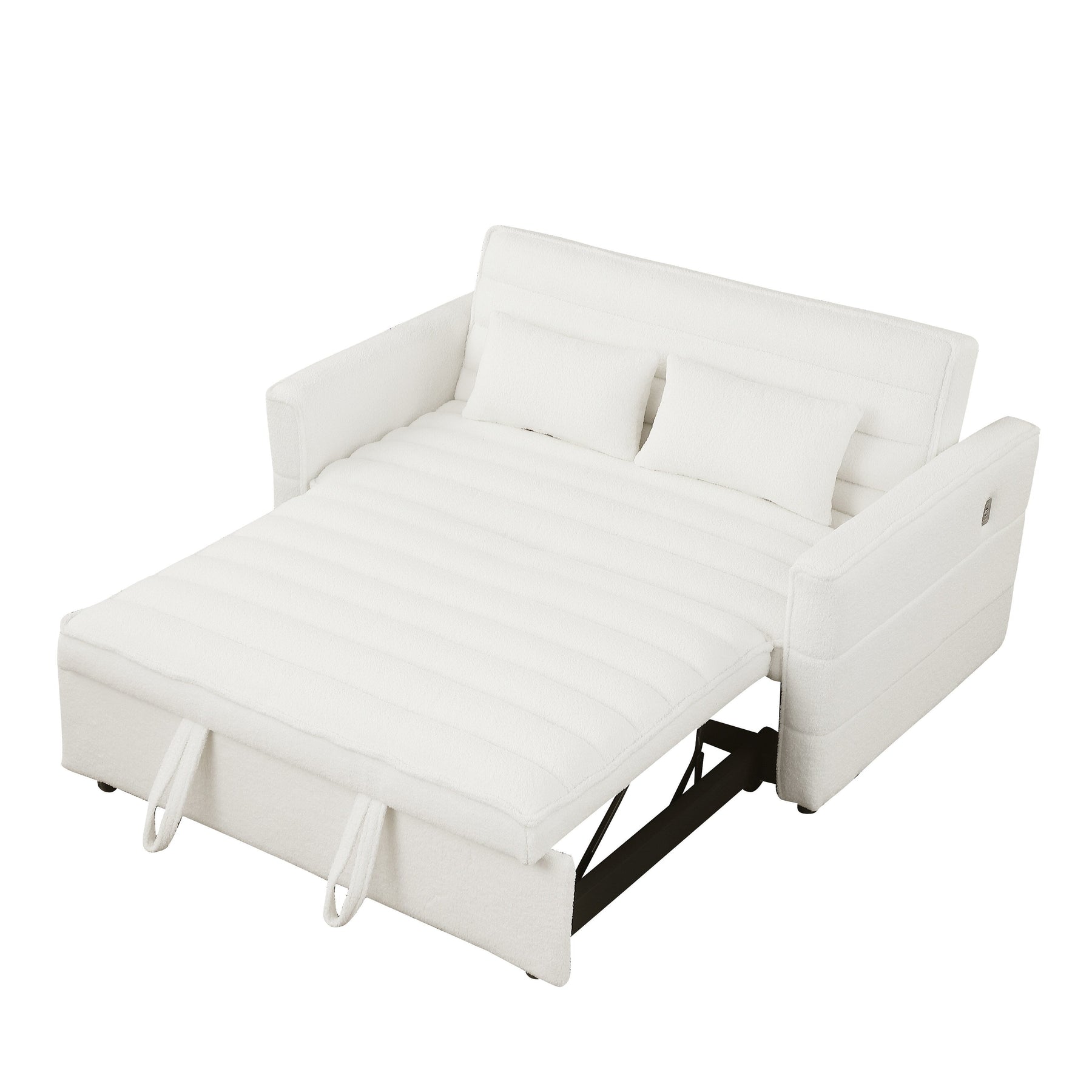 Pull-out Sleeper: Pull the included handle and it slides out on its rollers to easily convert the loveseat sofa into a sleeper bed. The twin-sized sleeper bed can accommodate your overnight guests. Sleeper Size: 66.6' L x 46.5' W. Perfect for small spaces.