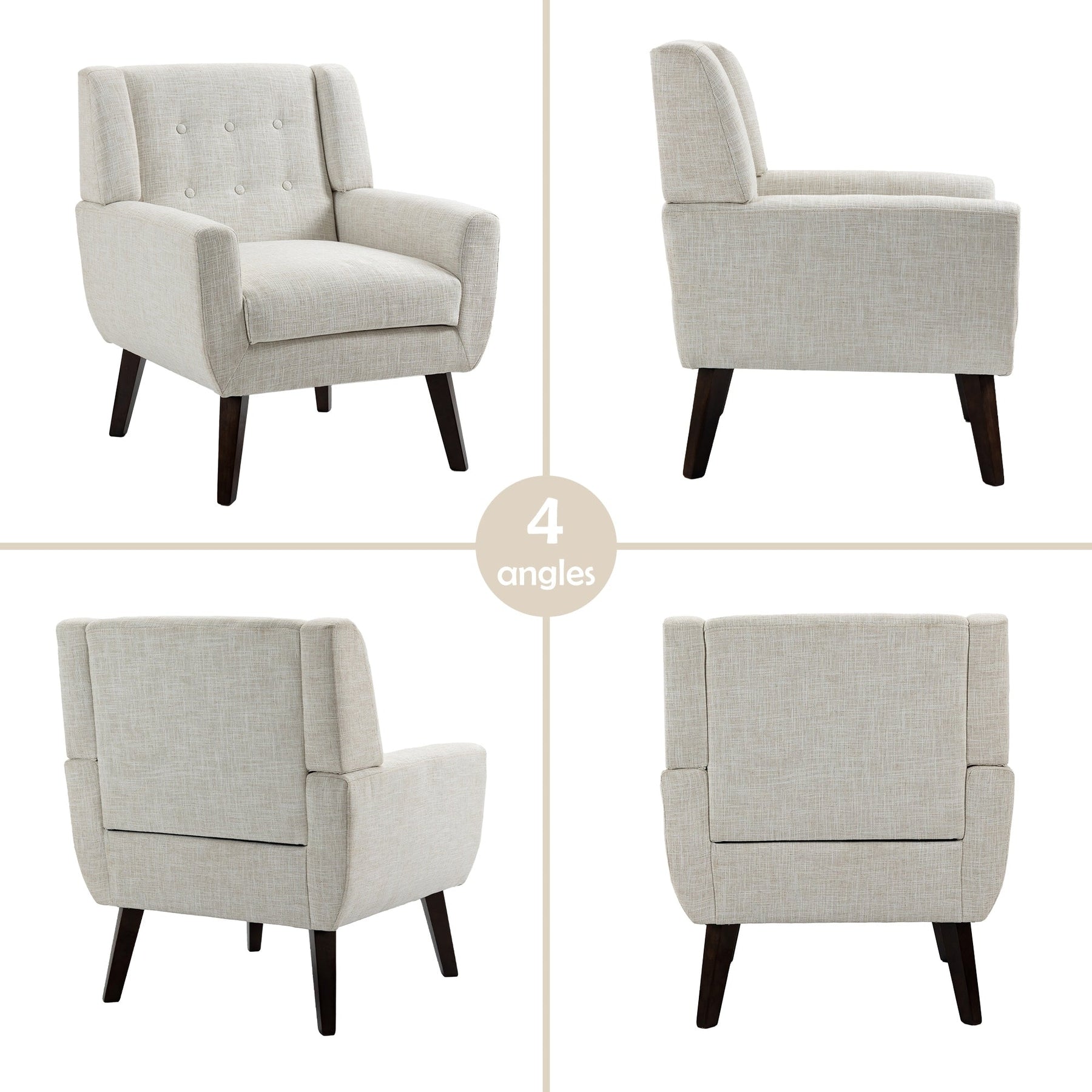 Add a touch of modern sophistication and comfort to your space with this Cotton/Linen Look Fabric Modern Accent Armchair. This armchair features a solid wood frame with tapered legs, a subtle wingback design, and rounded arms for a relaxing feel. Upholstered in high-quality cotton and linen look fabric, it offers both coziness and style. It is perfect for relaxing activities such as reading, watching movies, enjoying coffee, or chatting with friends. It can even be used as office furniture for business meetings. Choose from a variety of options including chair, chair set or chair and sofa set.