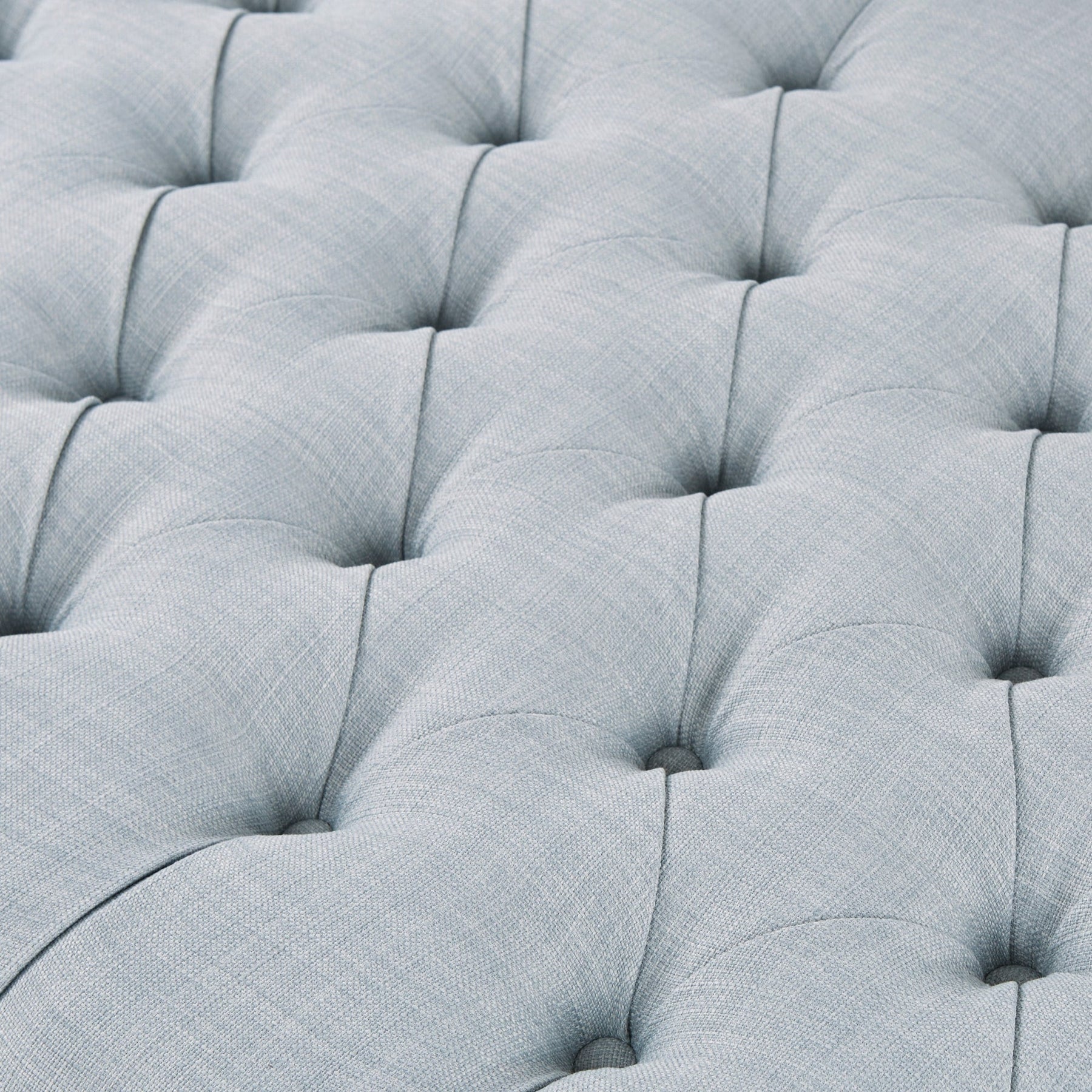 Put up your tired feet and unwind in style with the Madison Park Chase Surfboard Tufted Ottoman. The oval-shaped ottoman is upholstered in 100% polyester fabric that is both comfortable and durable. Adorned with a button-tufted top, it gives a modern yet elegant look. The solid wood legs in dark coffee finish contrast beautifully with the upholstery. Assemble the legs and place it in the living room as a stunning centerpiece. Keep it clean by spot cleaning or professional steam cleaning.