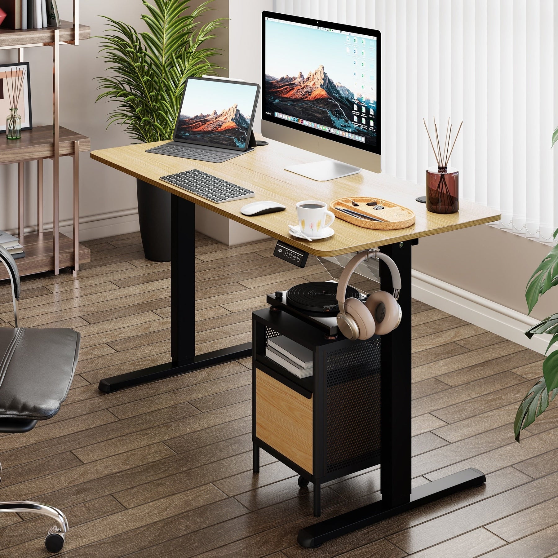 Upgrade your home office with the Futzca Height Adjustable Electric Standing Desk. This sturdy and ergonomic desk offers a comfortable work experience with its spacious and smooth work area and digital display handset for quick adjustments in less than 10 seconds. The safety corner design and solid standing desk provide added stability while the 3-position memory height function allows you to easily switch between sitting and standing. Plus, with a weight capacity of up to 176 pounds, this electric height adjustable desk is the perfect addition to any home office.