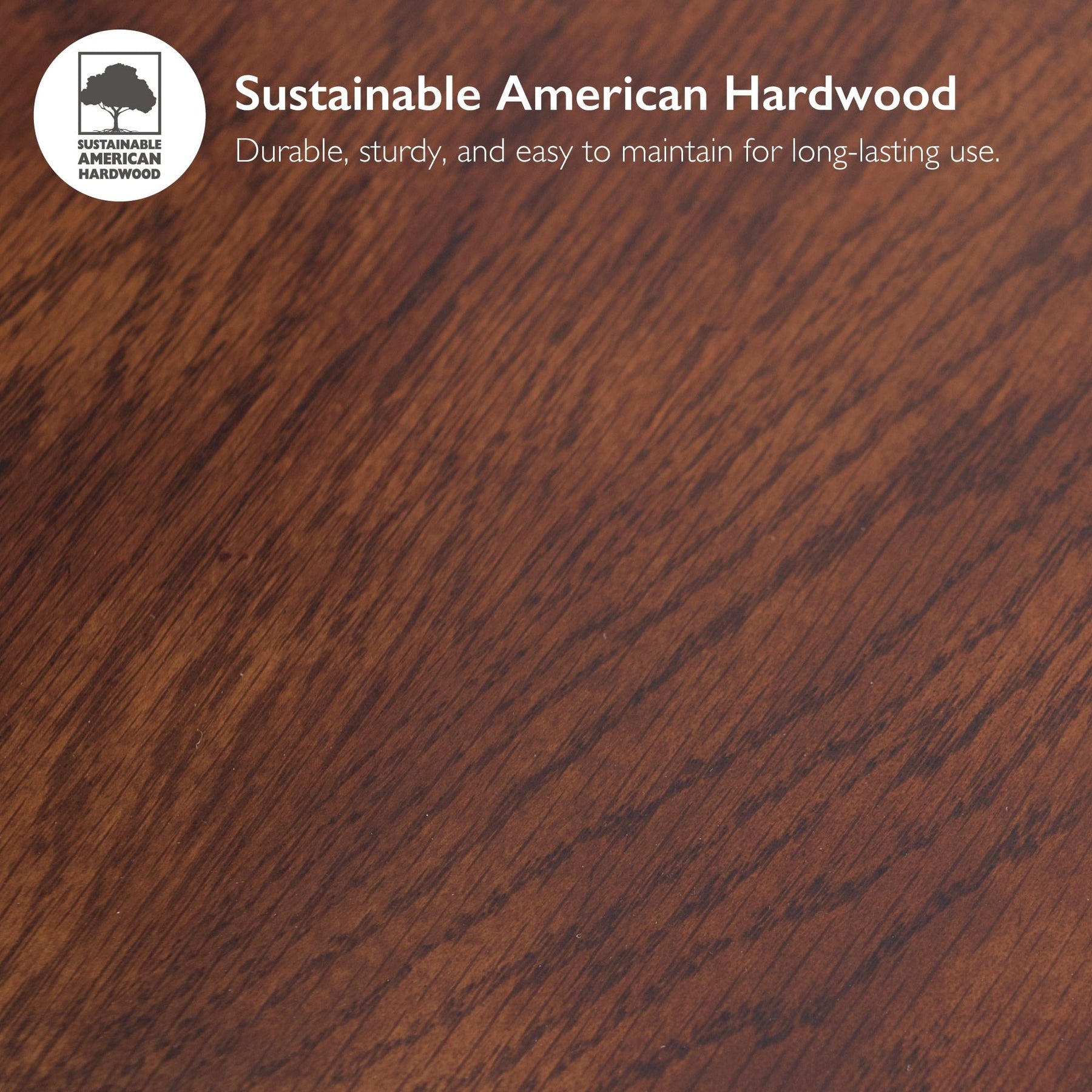 - Authentic Mission Design: Classic mission oak finish corner desk with slatted elements and blackened hardware for authentic appeal