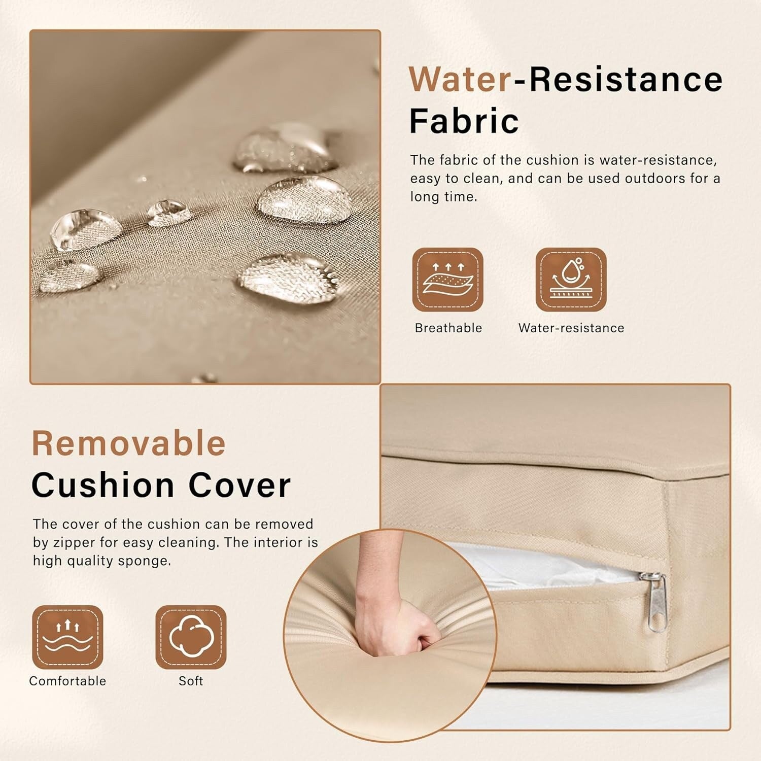 • Beige Cushion thickness: 2 inches thick