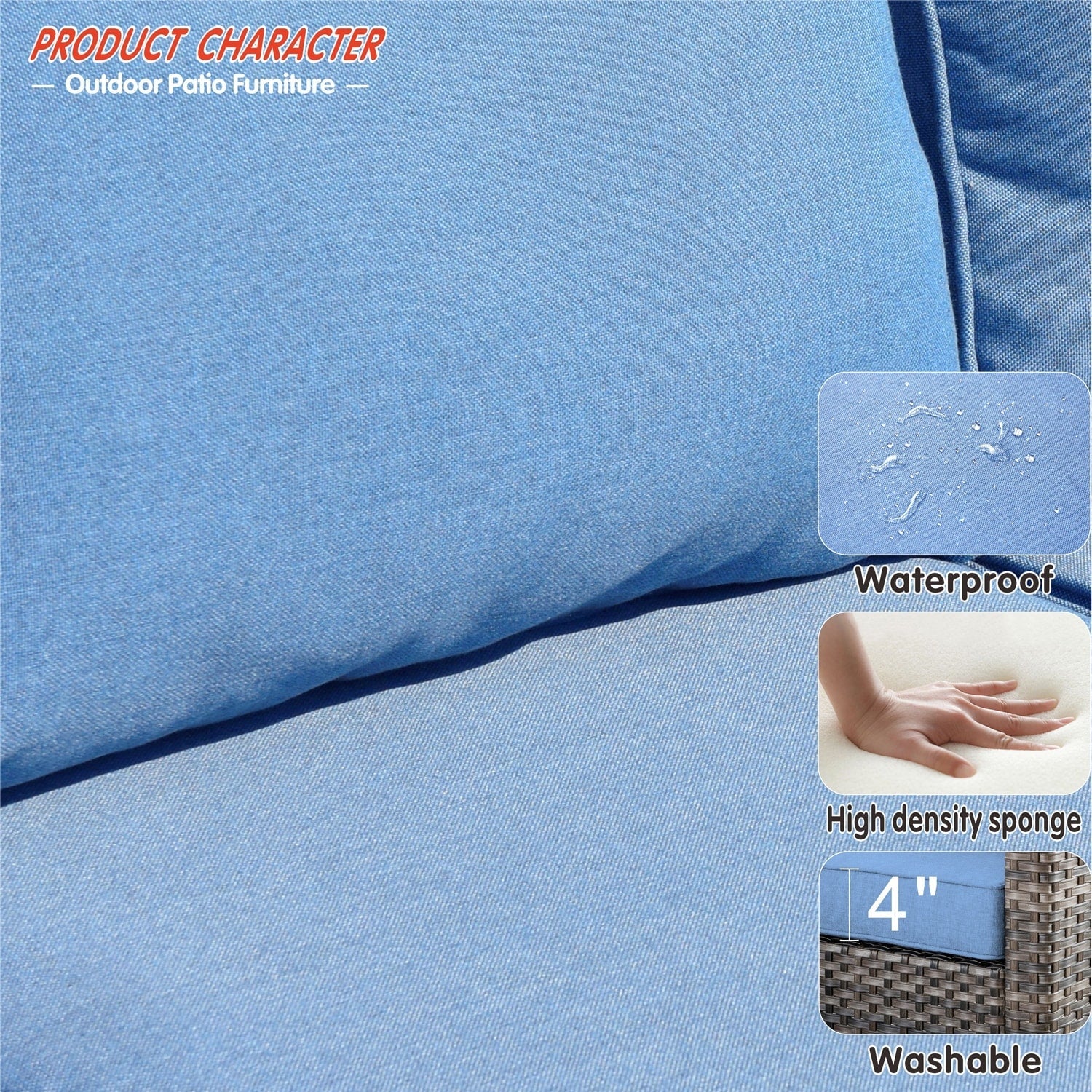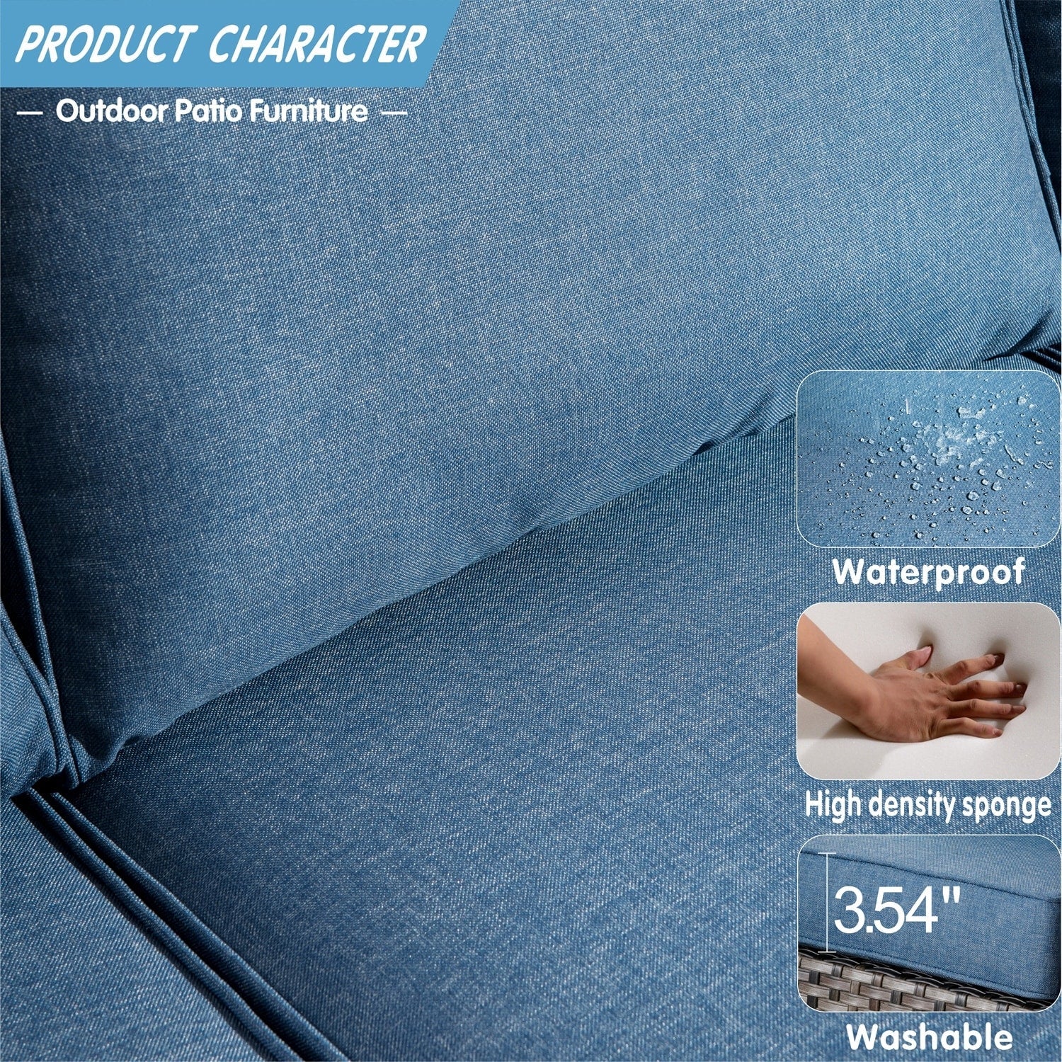 Durable Wicker Design: The sturdy, all-weather wicker construction ensures long-lasting durability, resistant to fading and damage from the elements. This set is built to withstand the outdoor conditions for years to come.