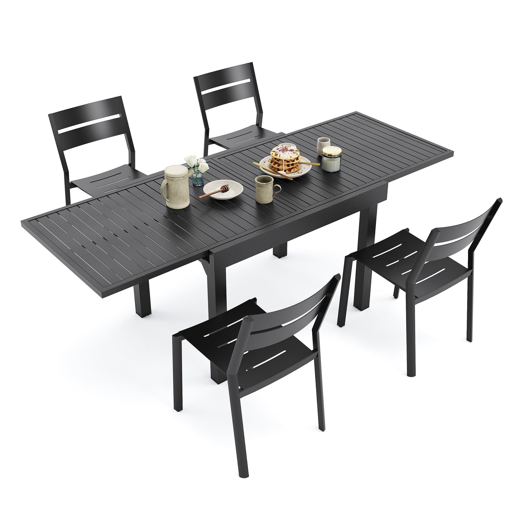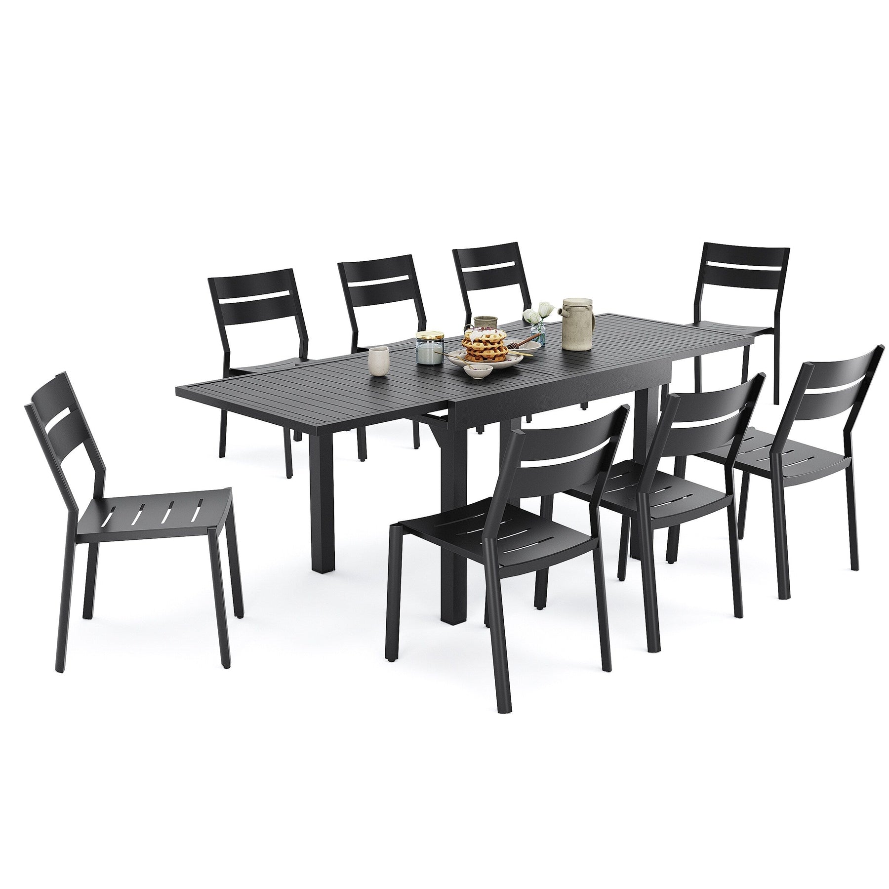 Make the summer extra special with this 5/7/9 pieces outdoor aluminum dining set. With an expandable table and chairs, this set is designed to accommodate unexpected guests while saving space, making it ideal for small outdoor areas. Its modern design brings a chic look to any outdoor area and upgrade the patio decoration, perfect for alfresco dining and entertaining. ???