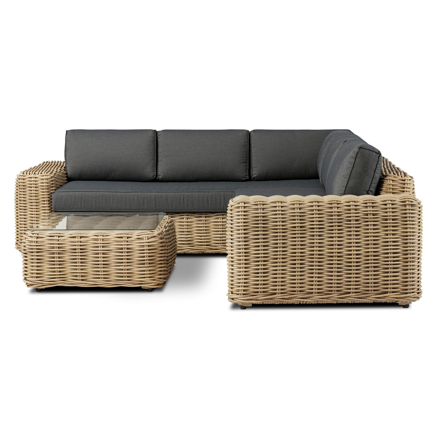 Introducing our sensational Puglia Corner Set, a perfect combination of comfort and style for your outdoor gatherings. This exceptional ensemble includes a sectional constructed with a synthetic rattan frame, meticulously designed to emulate the natural beauty of rattan while offering enhanced durability and weather resistance. The removable seat cushions provide optimal comfort and versatility, allowing you to customize your seating experience. Accompanying the sectional is a stunning coffee table, constructed with synthetic rattan and adorned with a sleek glass top, adding a touch of sophistication to your outdoor space. Whether you're sipping on refreshing beverages or engaging in lively conversations, our outdoor chat set effortlessly merges contemporary design, comfort, and functionality, creating an inviting and stylish atmosphere for unforgettable moments outdoors.