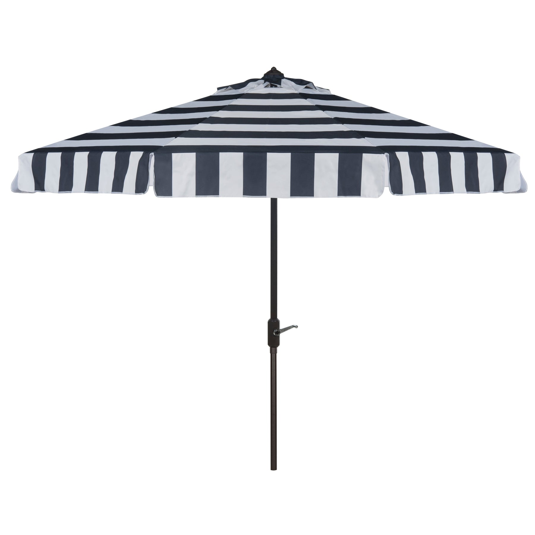 Inspired by the healing waters in a luxurious health spa in Germany's village of Baden Baden, this stylish eleven foot Round Umbrella is a favorite for those who love a touch of Euro flair. The always in fashion and white stripes keep it classic, while its elegant trim gives it a subtle modern update.