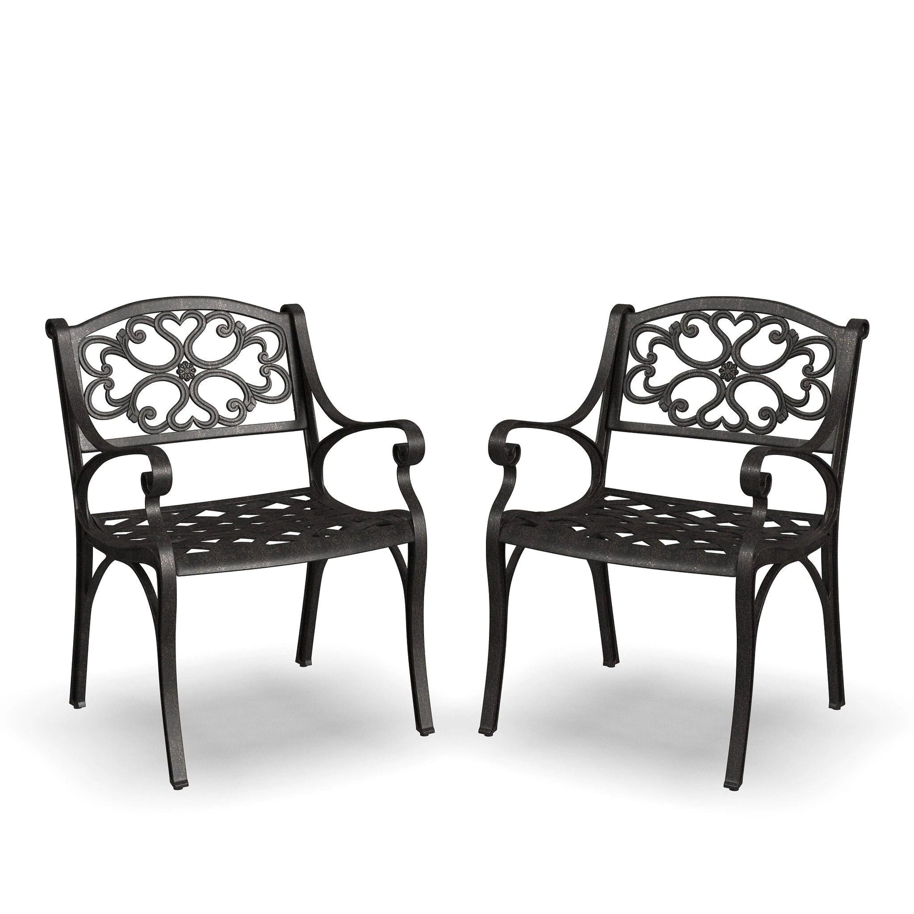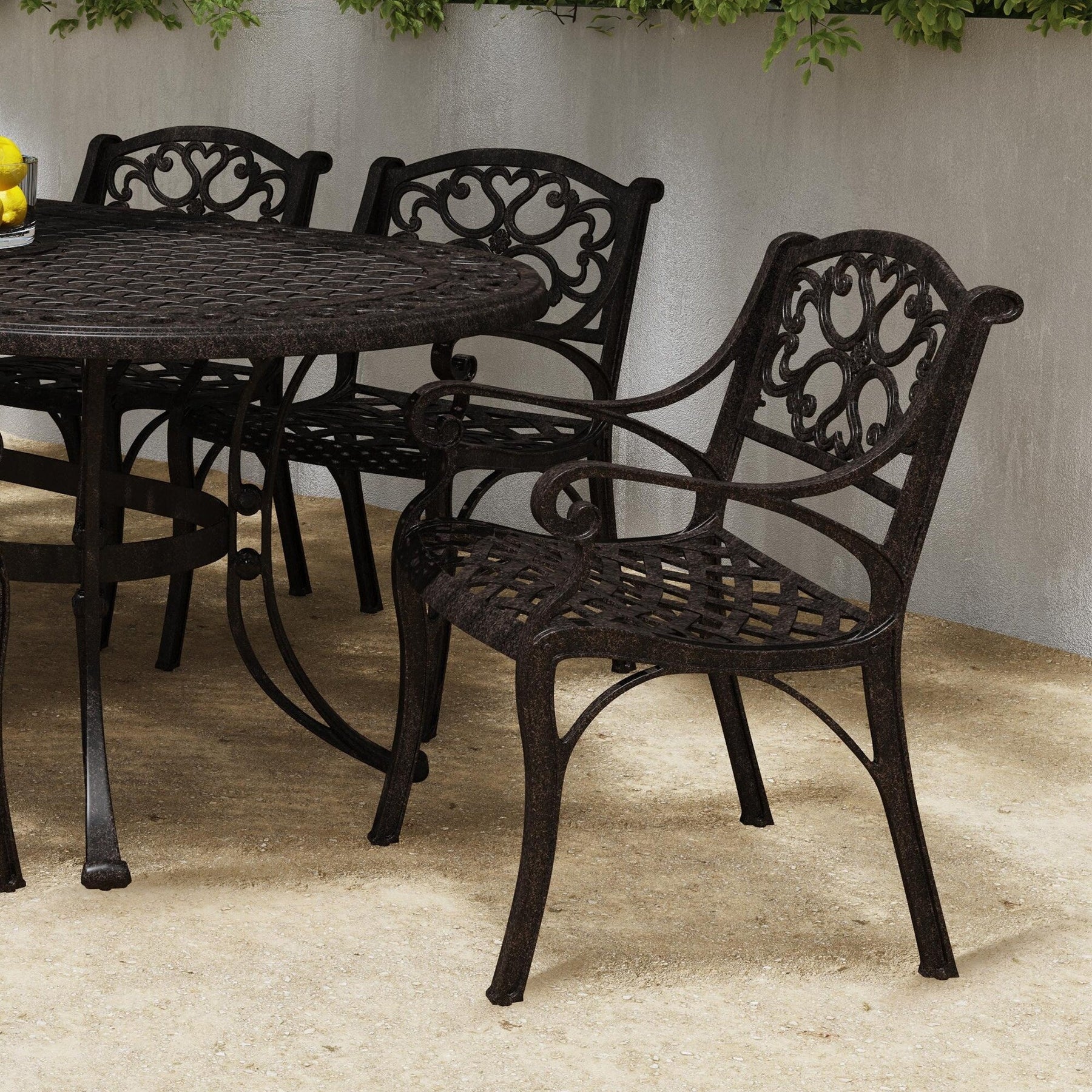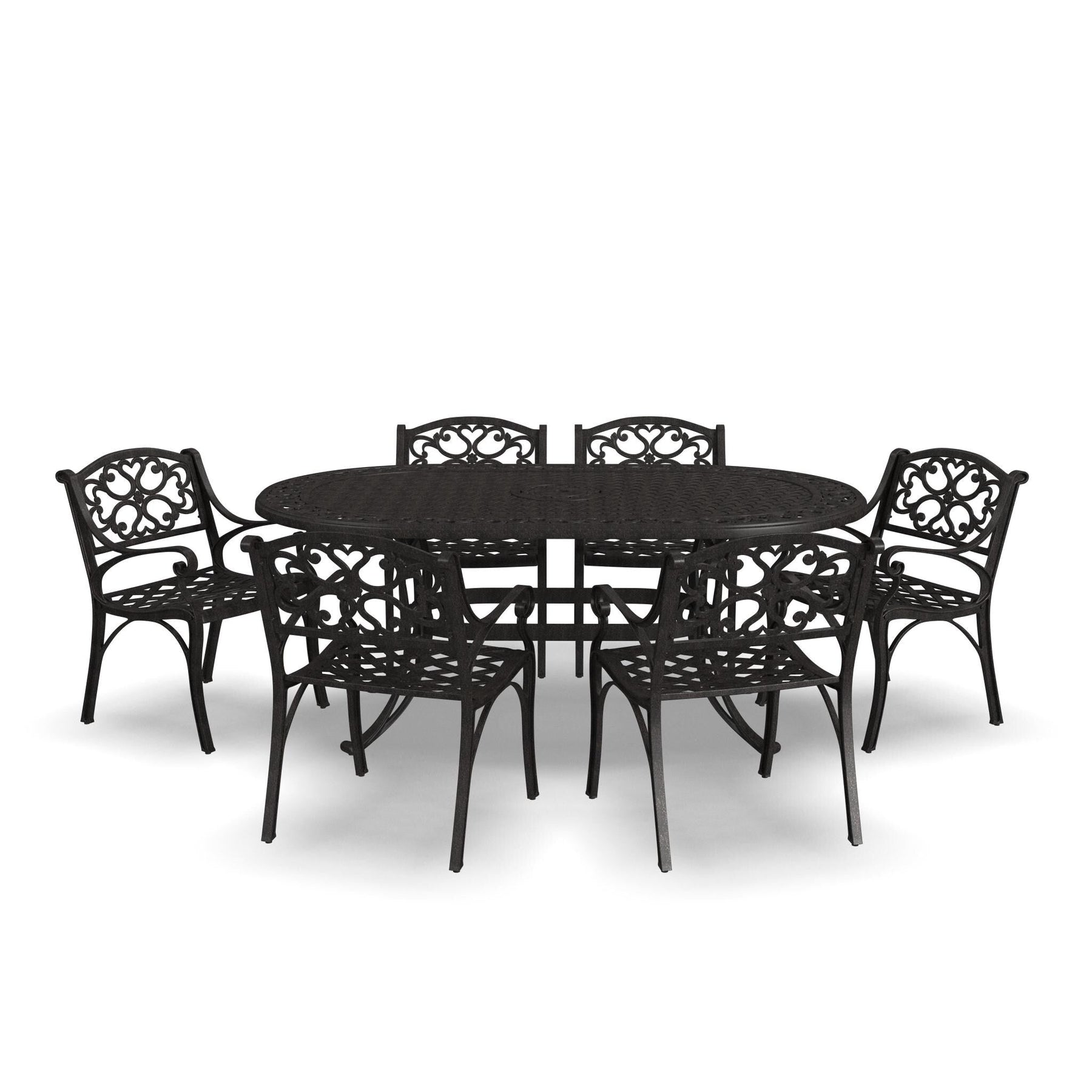 Turn an ordinary outdoor space into an oasis with this Homestyles Sanibel Outdoor Dining Set. Consisting of a 72' oval dining table and six armchairs, this set is constructed with bronze powder-coated aluminum for low-maintenance and lasting durability season after season. Simply add your own chair cushions and umbrella to create a seating arrangement that allows you to enjoy the great outdoors.