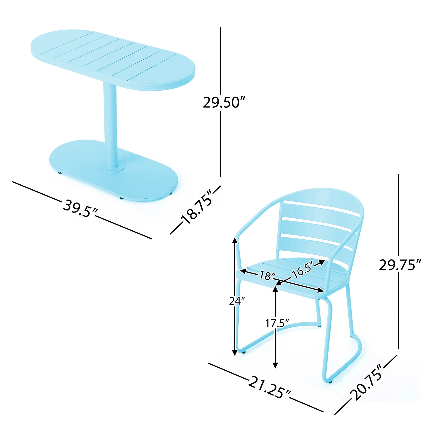This elegant outdoor bistro set is perfect for an intimate meal with a loved one. Made from a durable iron construction, it's built to hold up to the elements and bring pleasure for years to come. Ideal for the backyard, patio, or garden.