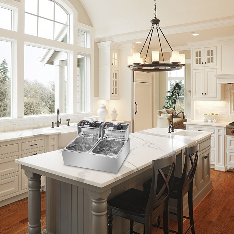 12.7QT/12L Stainless Steel Double Cylinder Electric Fryer