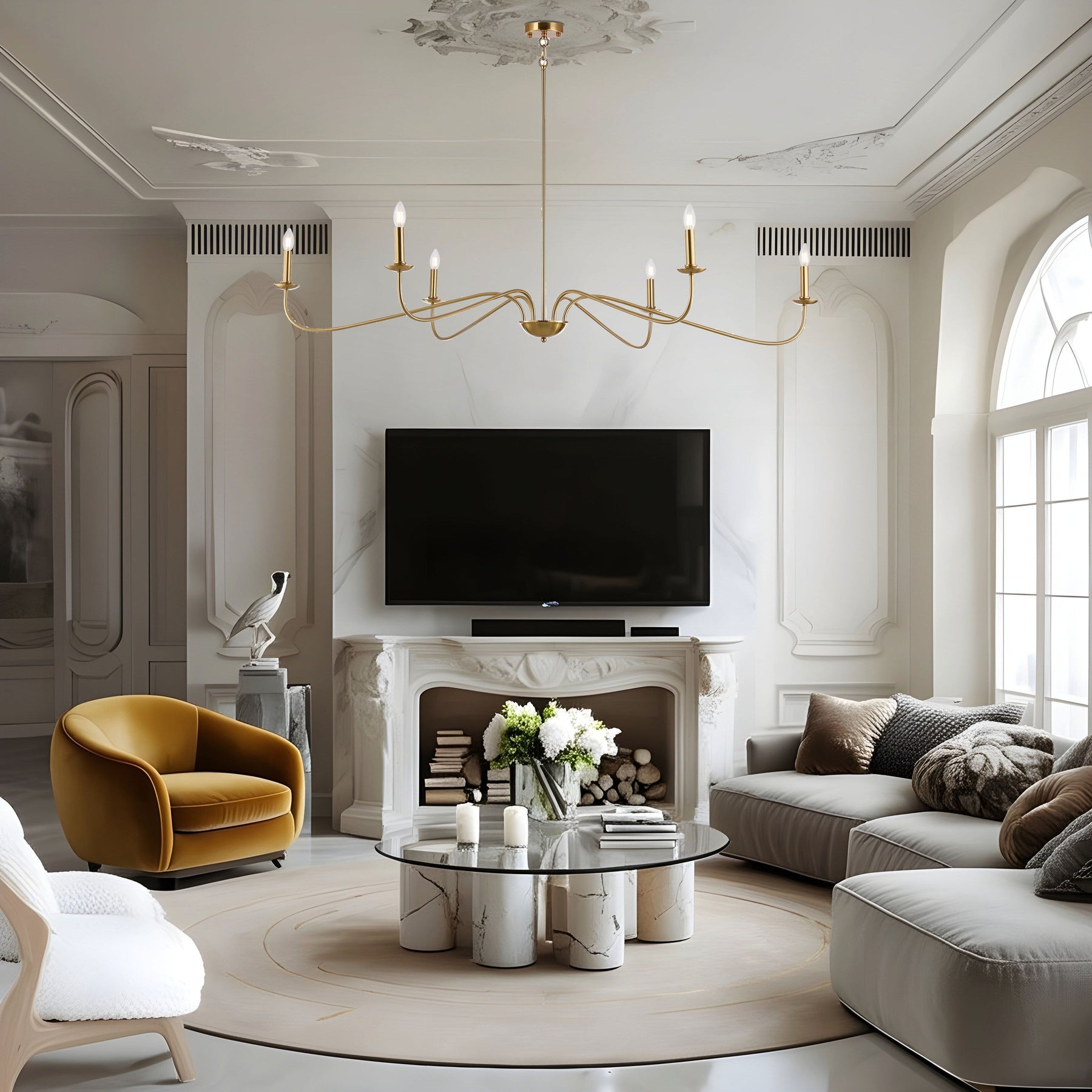 6 Light 64 Inches Minimalist Chandelier in Matte Black / Gold /Chrome - N/A