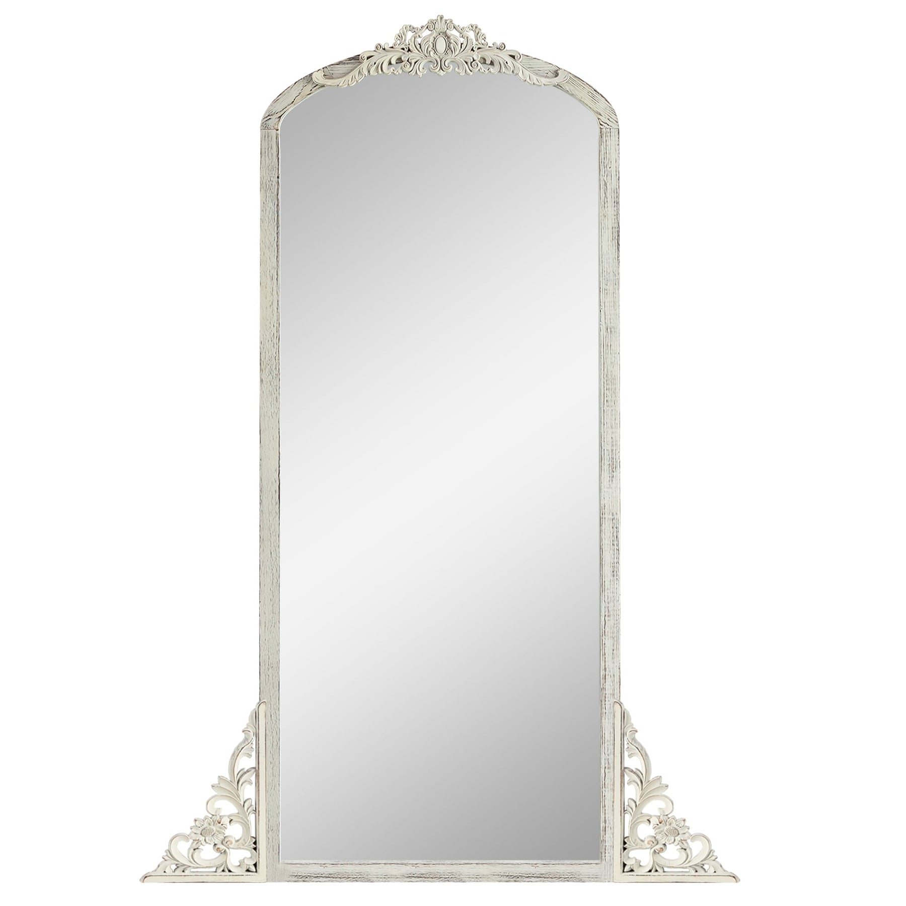Elevate your room's ambiance with the timeless elegance of this solid wood floor mirror. The arched silhouette and intricate windowpane design create a vintage-inspired optical illusion that enhances your space and adds distinctive character to any decor.