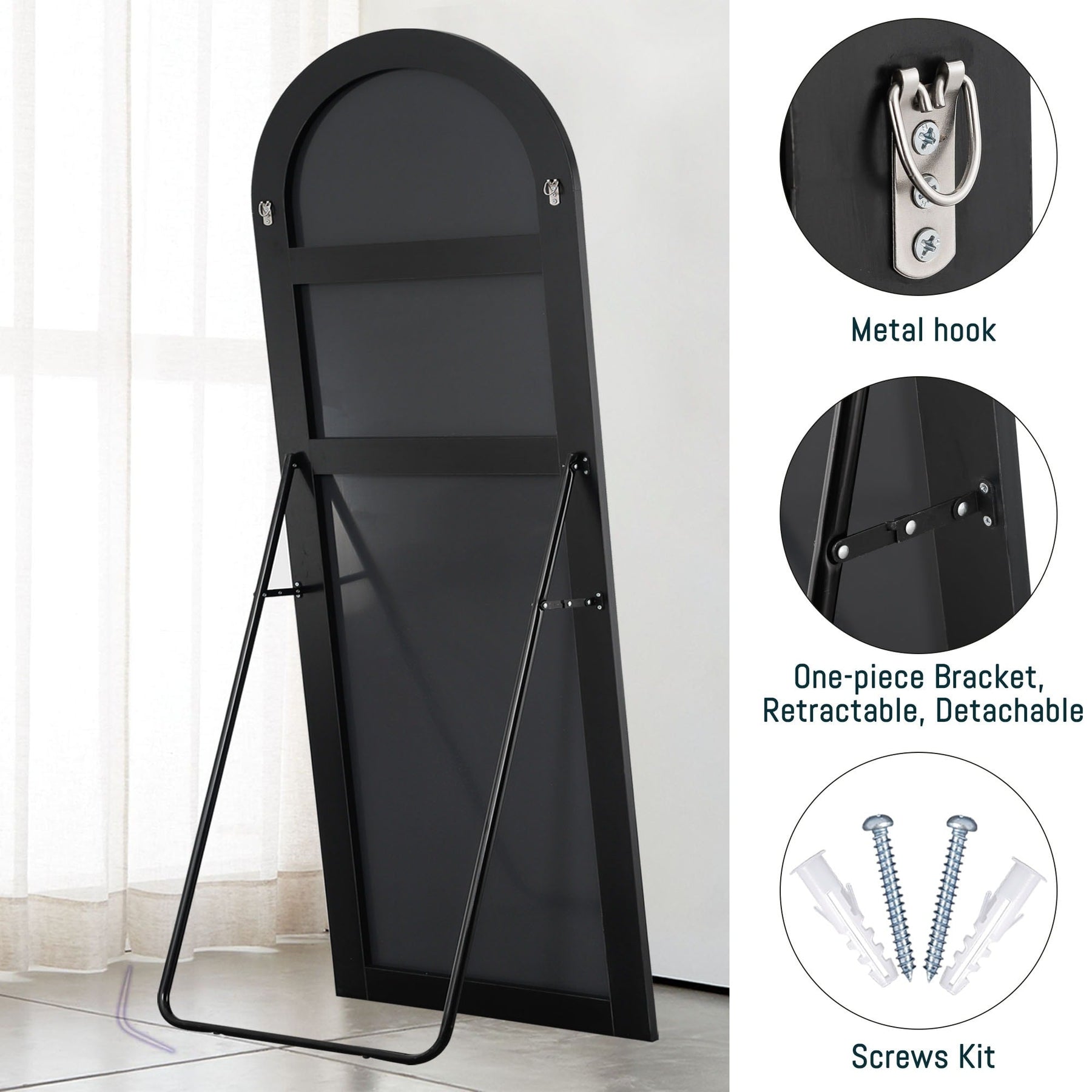Enhance your home with the modern style and sophistication of the Arched Full-Length Mirror. This elegant mirror is perfect for any room and decor style, offering excellent reflectivity and clarity. The solid aluminum alloy frame and shatter-proof glass ensure high quality and safety.