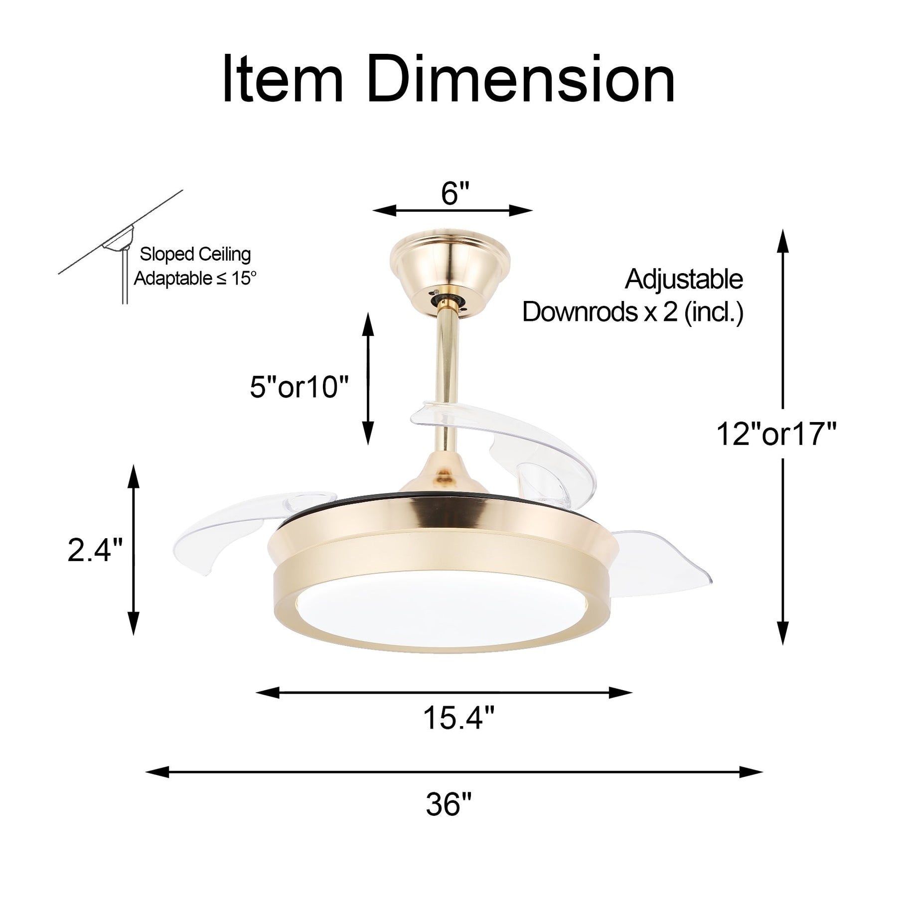 - Sloped Ceiling Adaptable: Yes, Max 15 degree