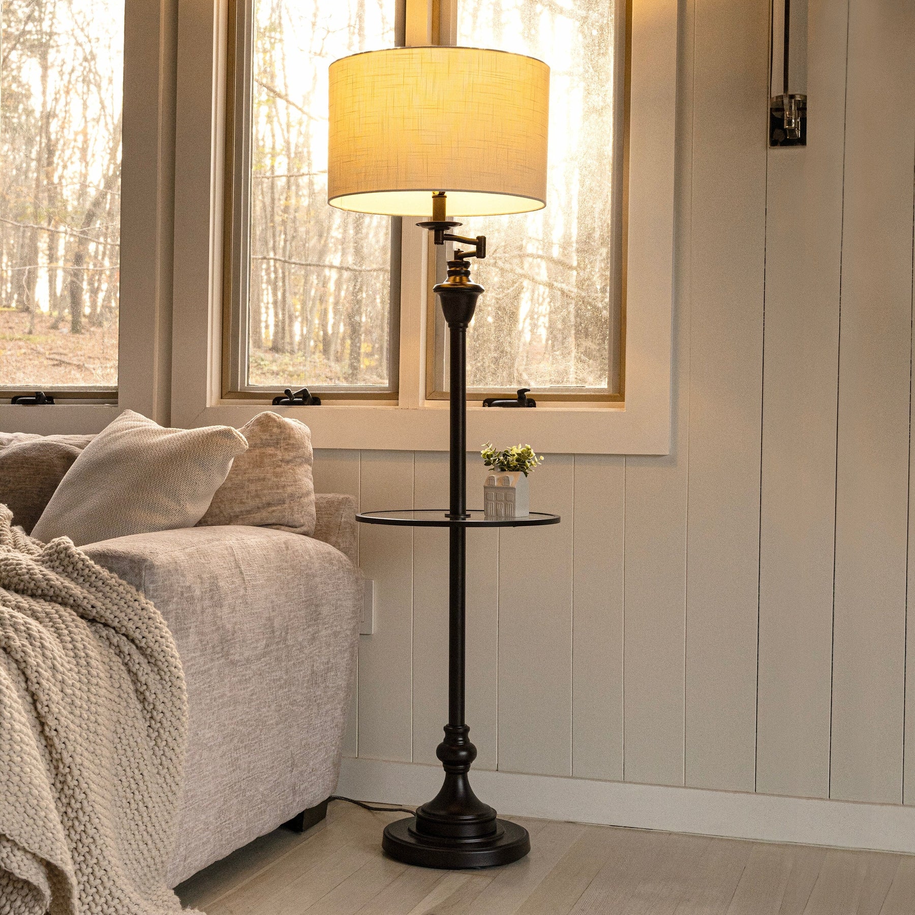 - Tapered linen hardback shade in 100-percent cotton