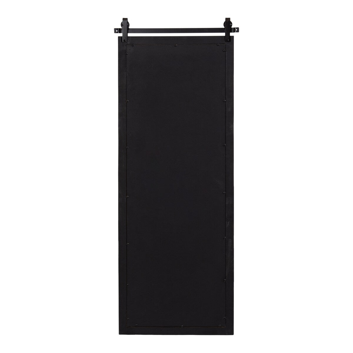 • Contrasting black iron barndoor-style top