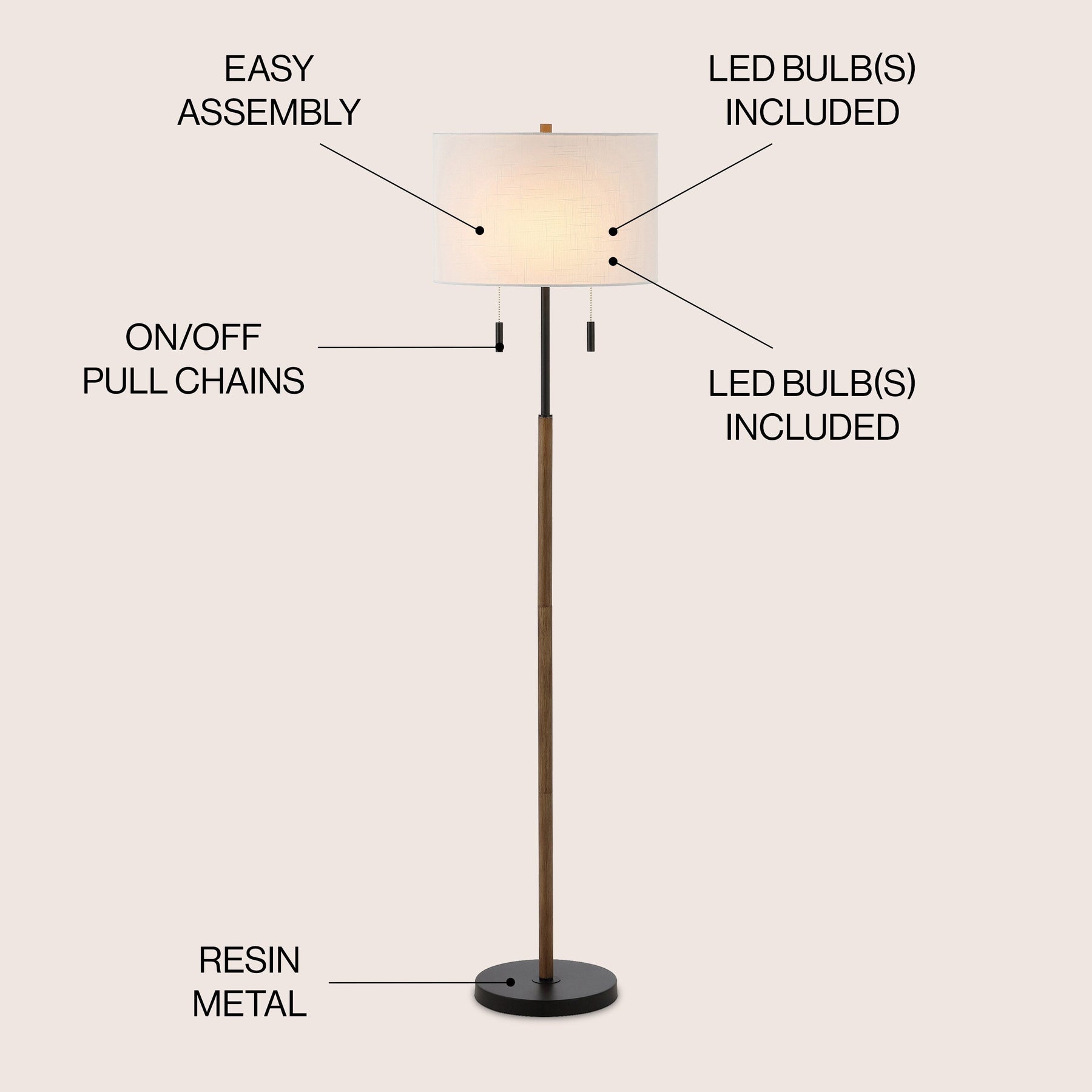 • Designed with two pull chains, this floor lamp is easy to turn on and off no matter where it is