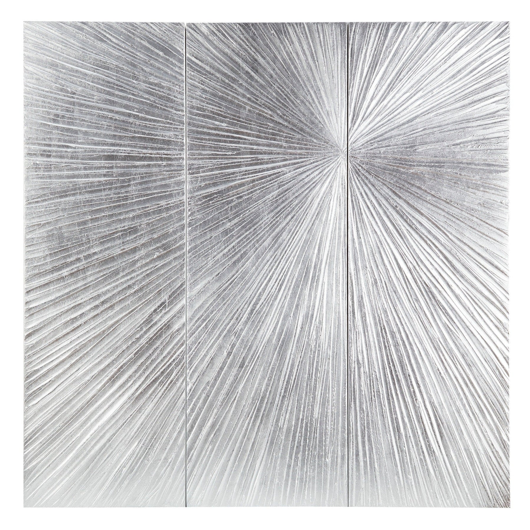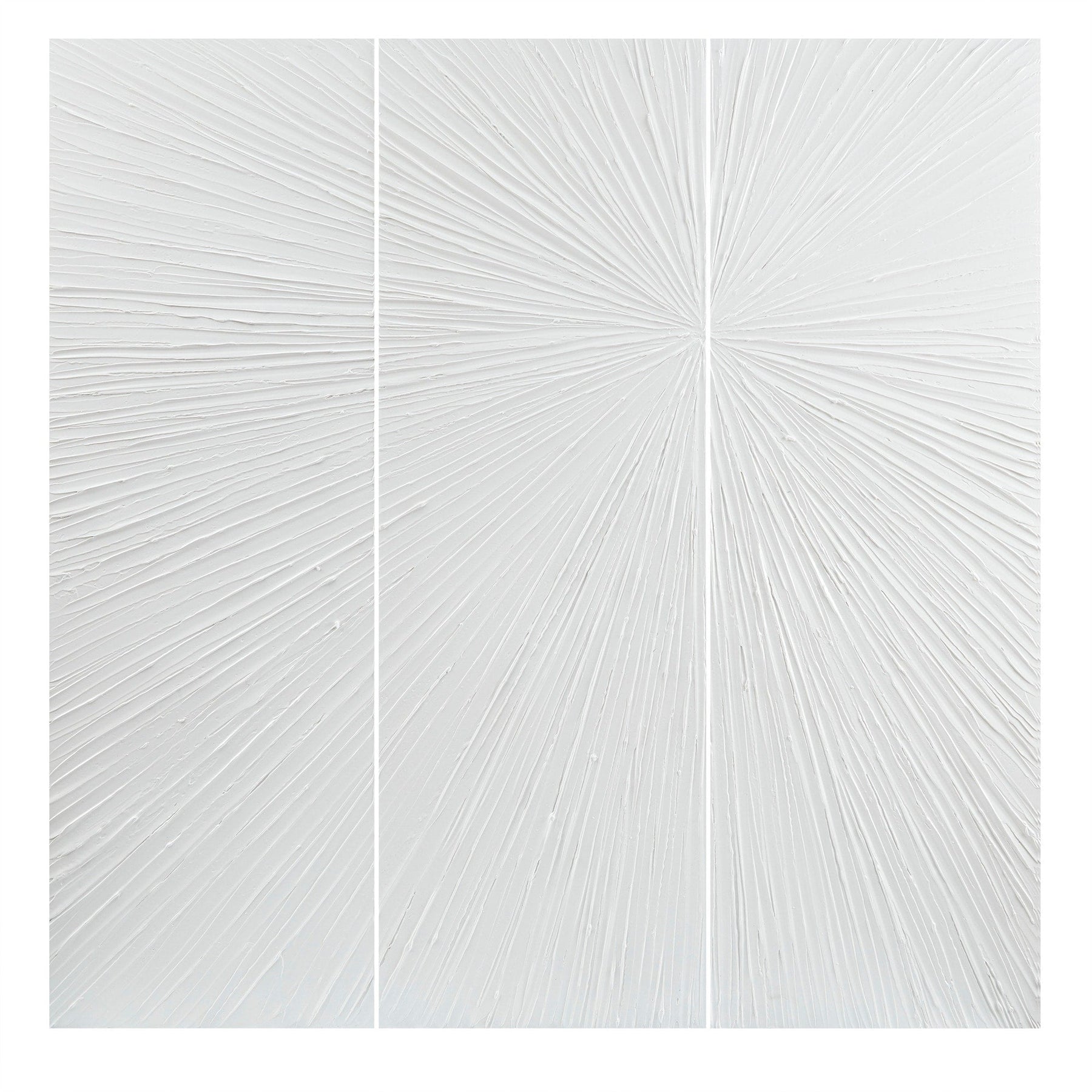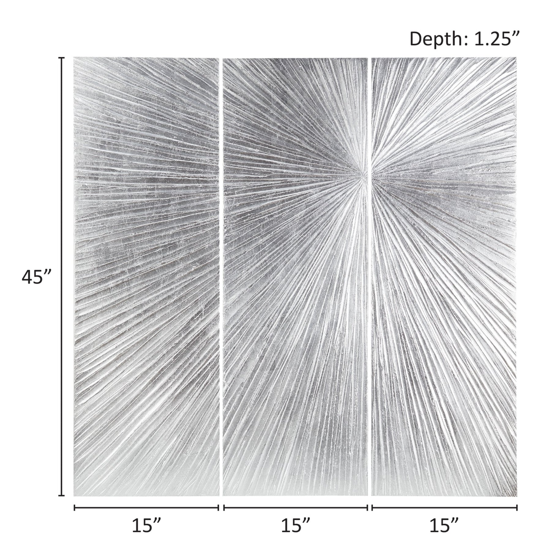 Illuminate your space with the captivating elegance of the Sunburst Hand Painted Triptych Wall Art Set. This striking 3-piece set showcases a modern abstract sunburst design, enhanced by a gold metallic finish that adds warmth and sophistication to any room. Crafted from dimensional resin with a heavy texture detail, each panel brings a gallery-worthy presence to your décor. Each piece is thoughtfully designed for vertical hanging with D-ring hangers, making installation effortless. Whether placed in a living room, dining area, or entryway, the shimmering gold tones and dynamic design create an eye-catching focal point.Transform your home into a space of refined luxury with the Sunburst Triptych Wall Art Set — a stunning reflection of modern artistry.
