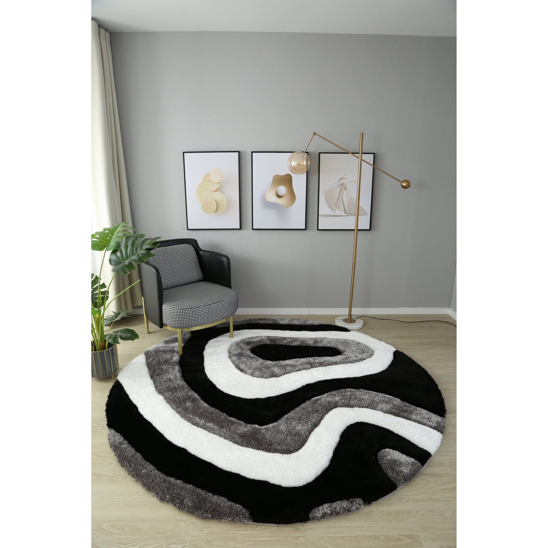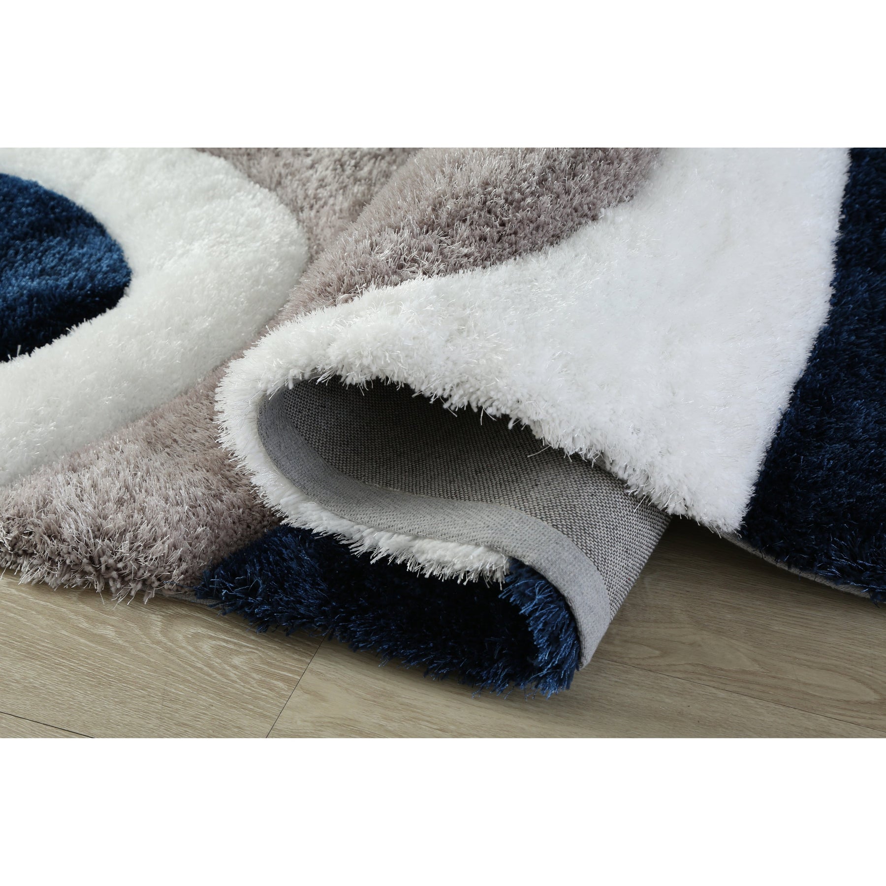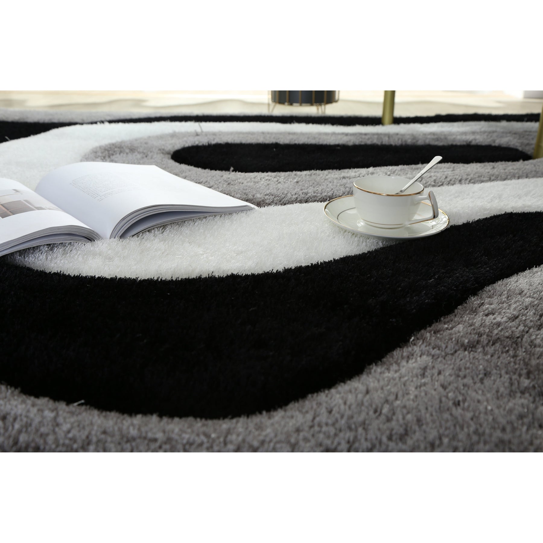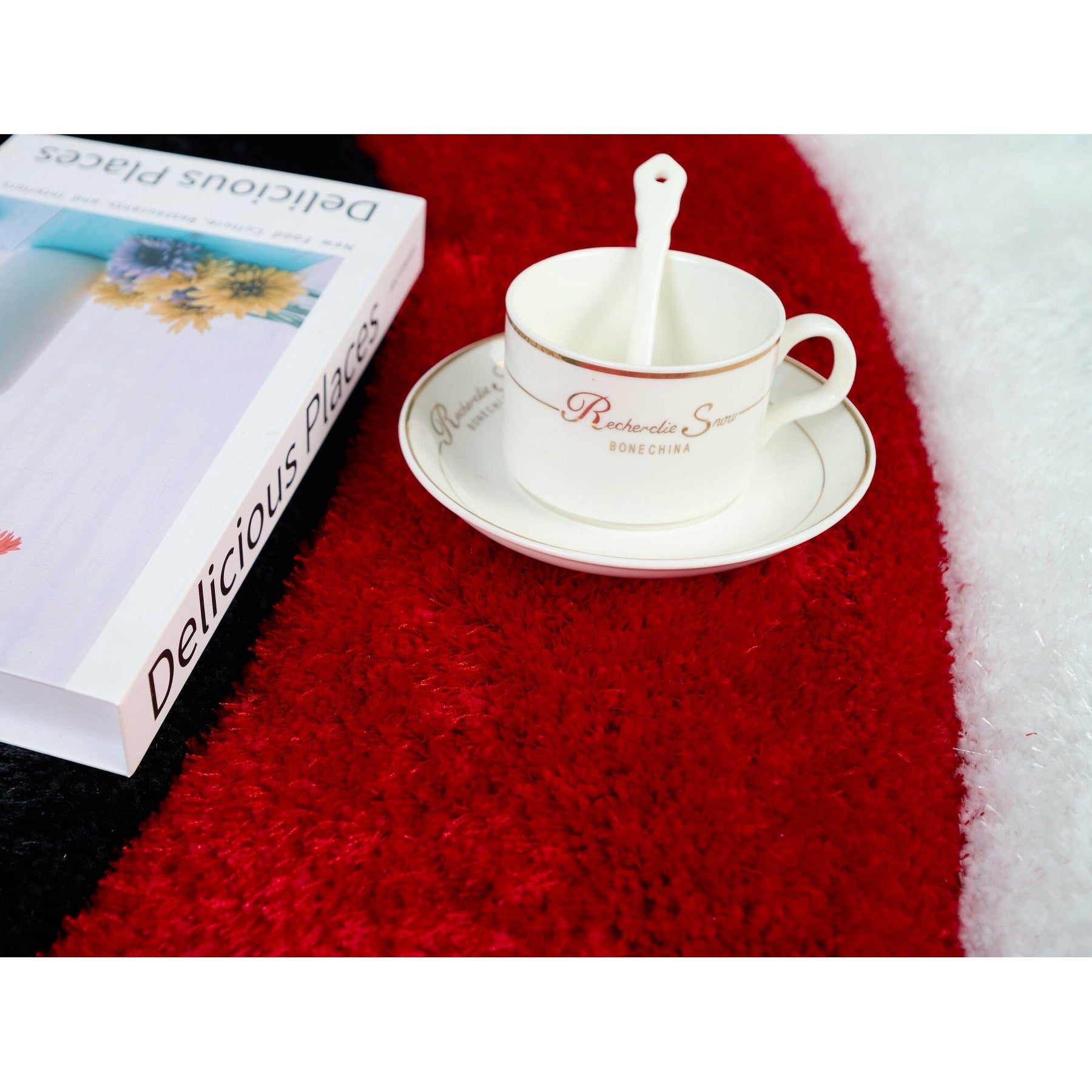 Material: 100% PolyesterBacking Material: CottonAvailable Colors: Black/White, Gray/Purple, Navy Blue/Gray, Black/Red, Gray/Dark Gray and Navy Blue/TanMachine Made ConstructionPower Loom Technique Shag StyleRectangular ShapeNo Distressing
