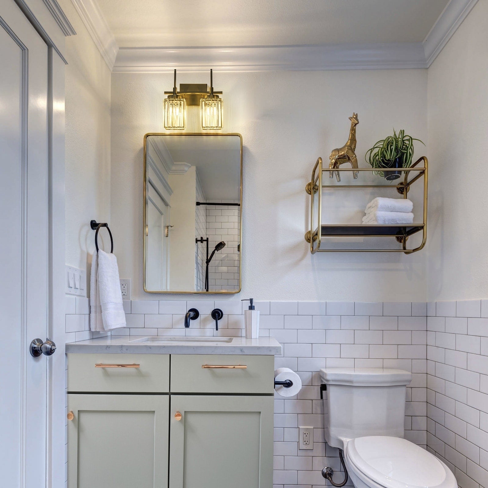 - Modern glam linear crystal bathroom vanity light