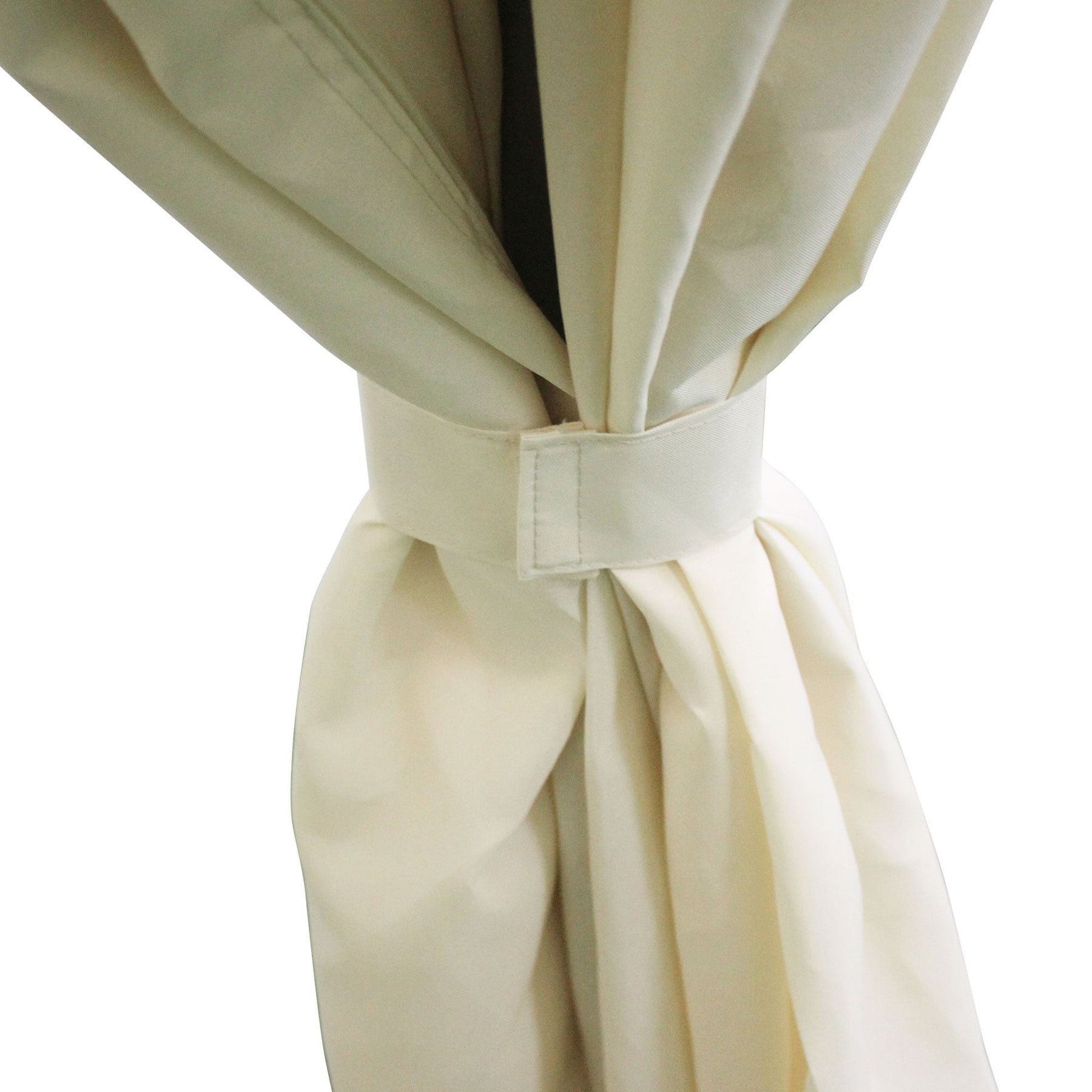 •  Curtains create privacy when wanted, attached with hook and loop straps;