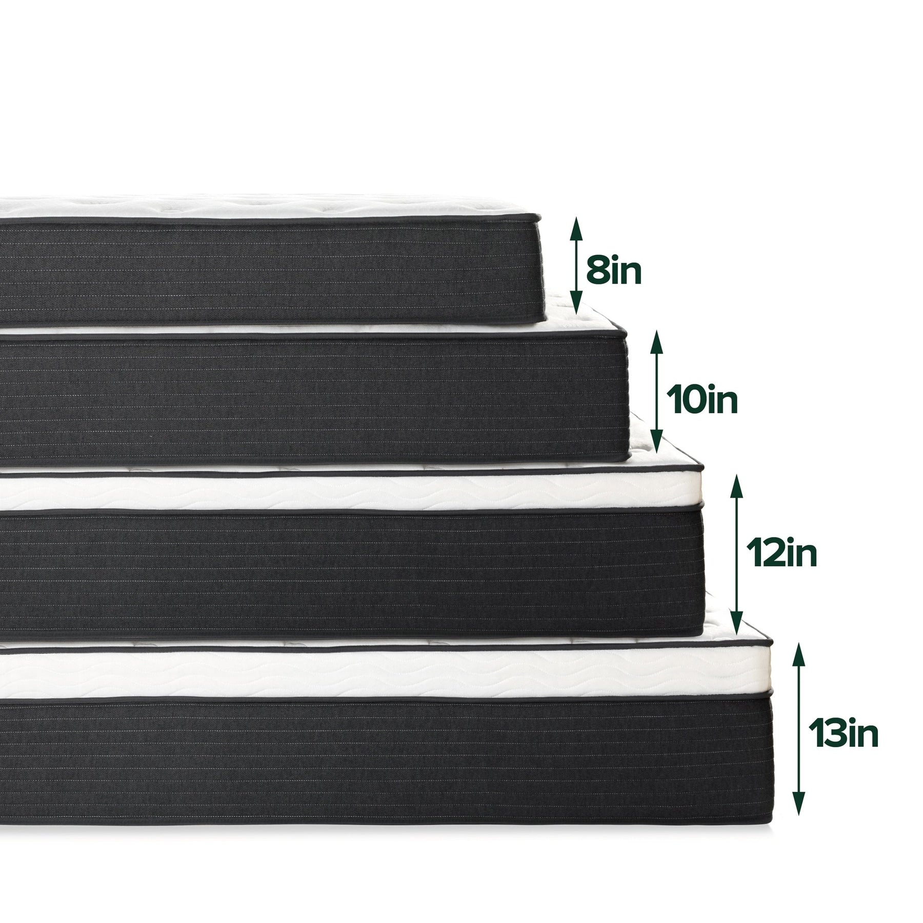 With a system of pressure-relieving, durable pocket springs and skillfully crafted Zinus foam layers for ideal comfort, the Comfort Essential Hybrid offers the finer touches of a high-end mattress at an affordable price. Designed to prioritize your comfort as you snooze, this well made mattress is layered with fiber padded quilting and Zinus Comfort Foam® that cradles your shape, naturally conforming to your curves. Independent pocket springs beneath help optimize pressure relief and reduce any motion transfer felt from a sleeping partner or pet. The Comfort Essential Hybrid also features a two-toned white and grey cover for an attractive modern look and soft, breathable feel that'll beckon you into bed night after night. And although it's reasonably priced, we haven't skimped on what really matters, like convenient, compact packaging that ships straight to your door, and a worry-free 10 year warranty for complete peace of mind. Think impressive comfort and great sleep are beyond your wallet's reach? The Comfort Essential Mattress will make you think again.