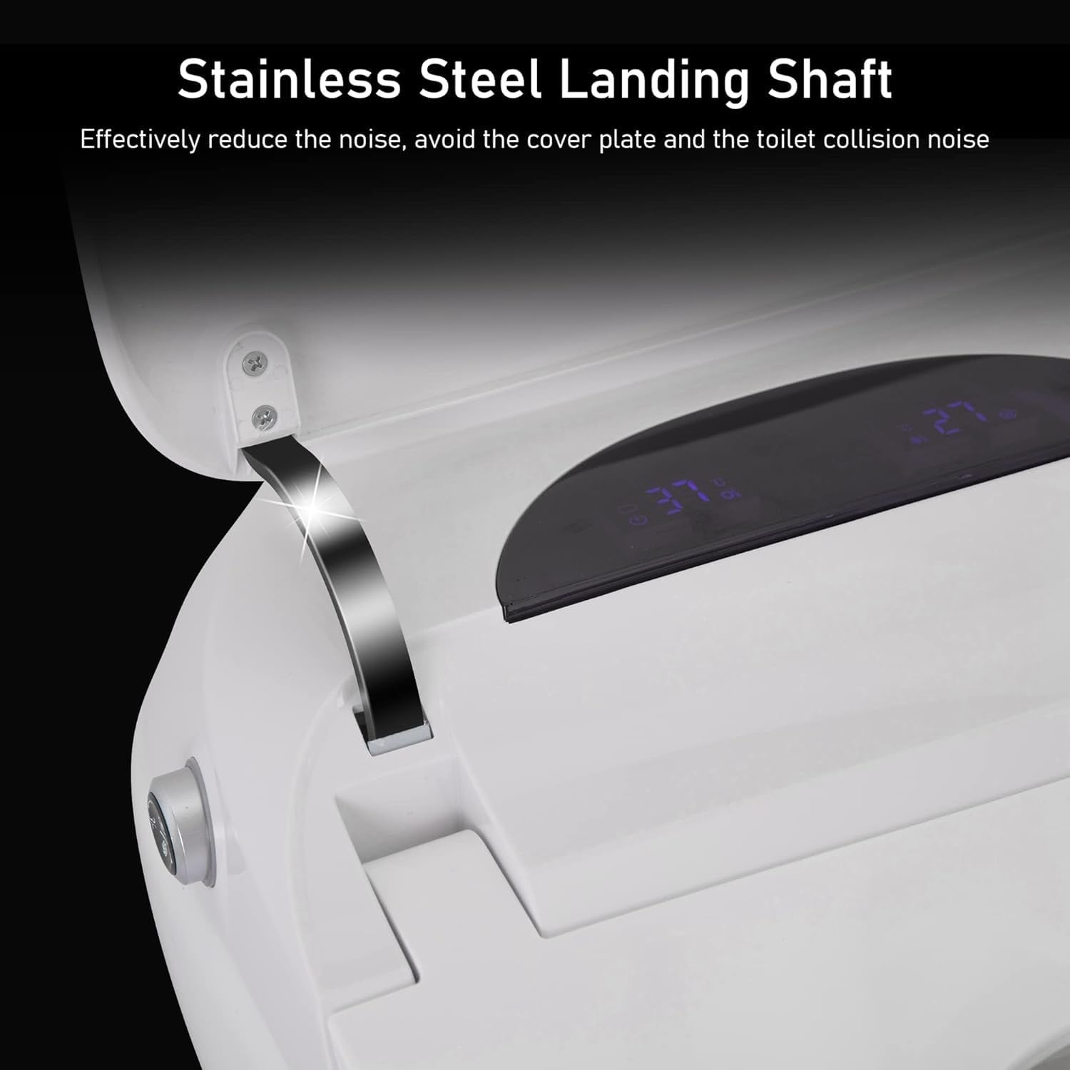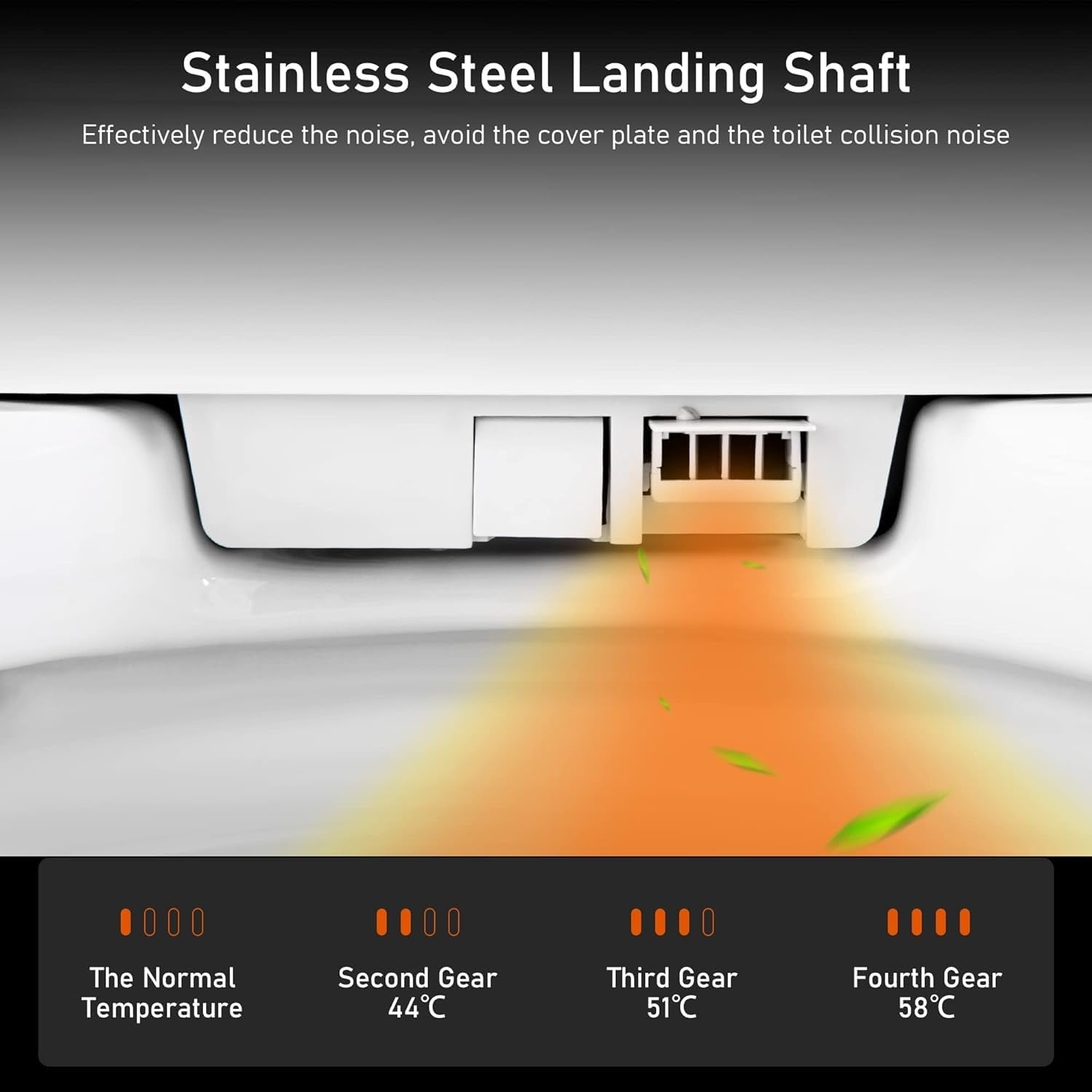 • 🚽 Cozy Heated Seat & Intuitive LED Display: Our smart toilet with heated seats allows you to adjust the temperature through a remote or side control knob, providing a warm and comfortable sitting experience. Stay informed with real-time seat and water temperature updates displayed on the LED screen, managed by a sensitive sensor.