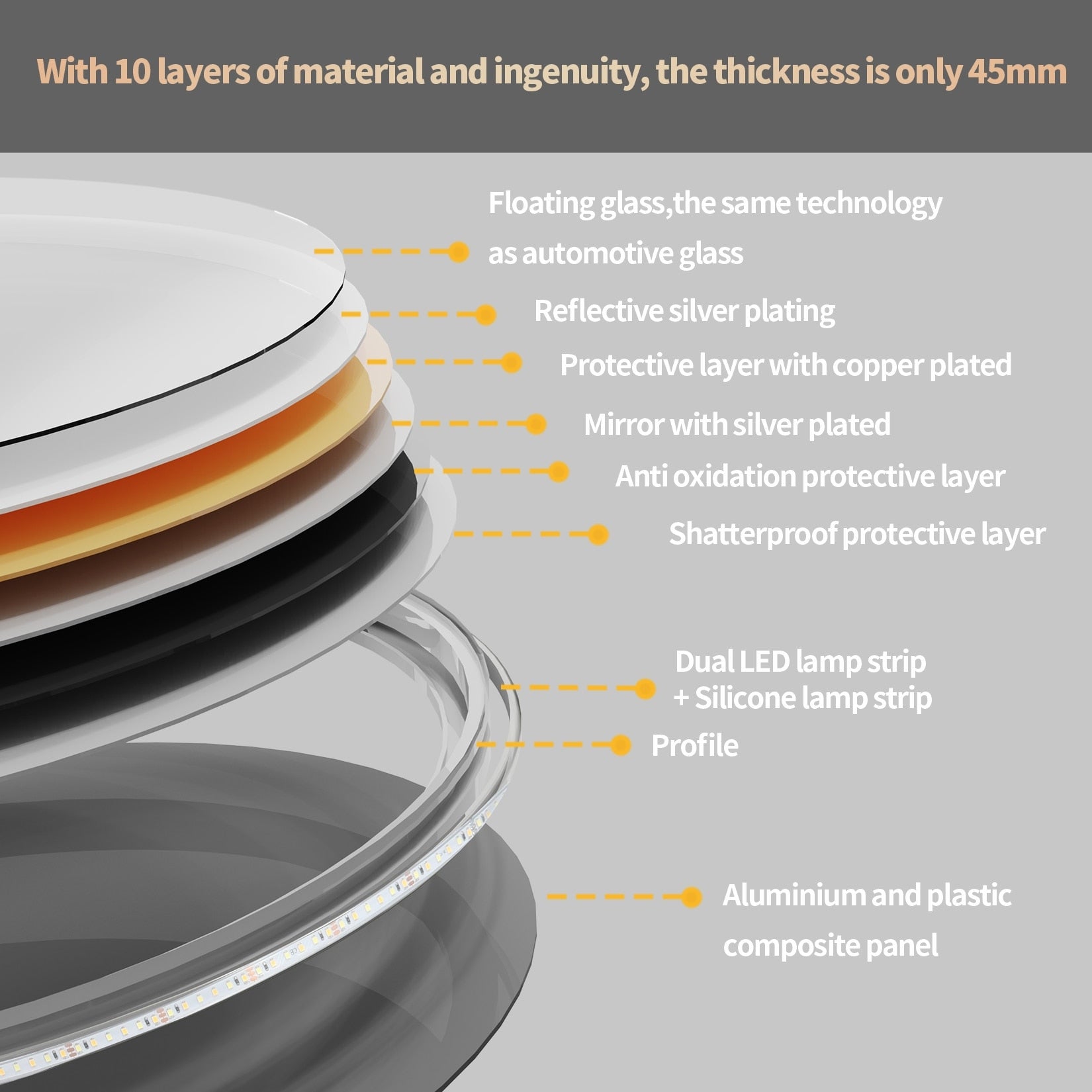 • Material: 20% Aluminum Alloy frame + 80% HD Glass mirror